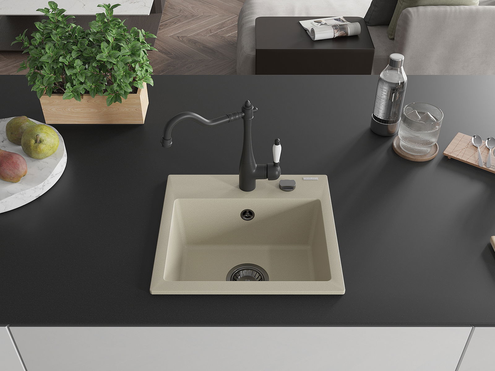 Mexen Milo мивка от гранит 1-камерна с кухненски смесител Carla, бежова - 6505-69-670700-70