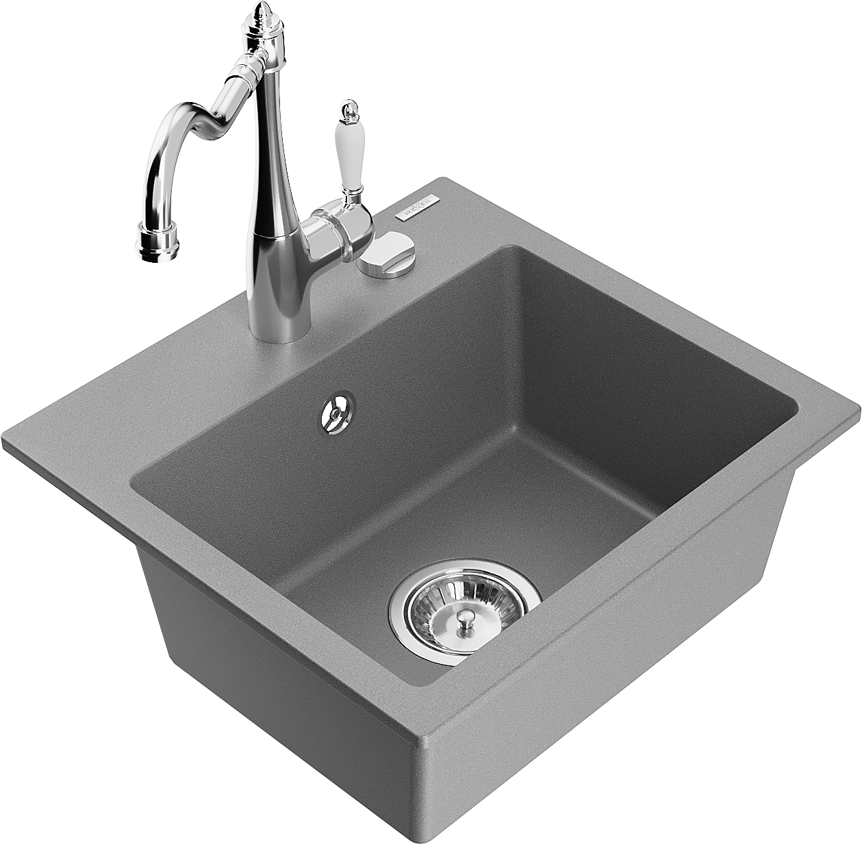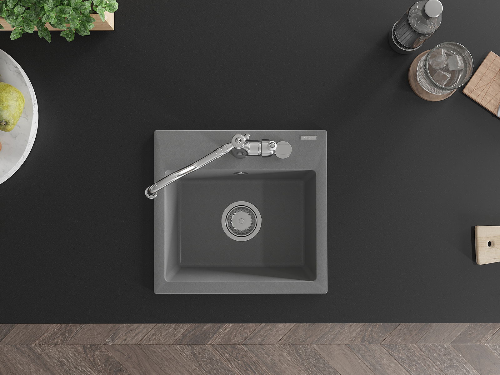 Mexen Milo гранитна мивка с едно корито с кухненски смесител Carla, сива