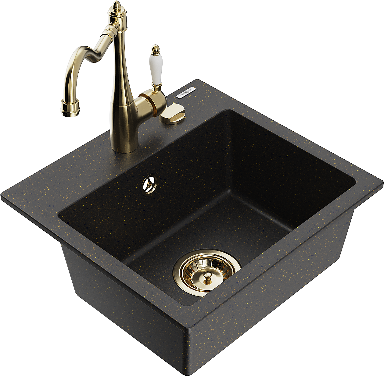 Mexen Milo гранитна мивка с 1 камера и кухненски батерии Carla, черен/златист металик - 6505-75-670700-50