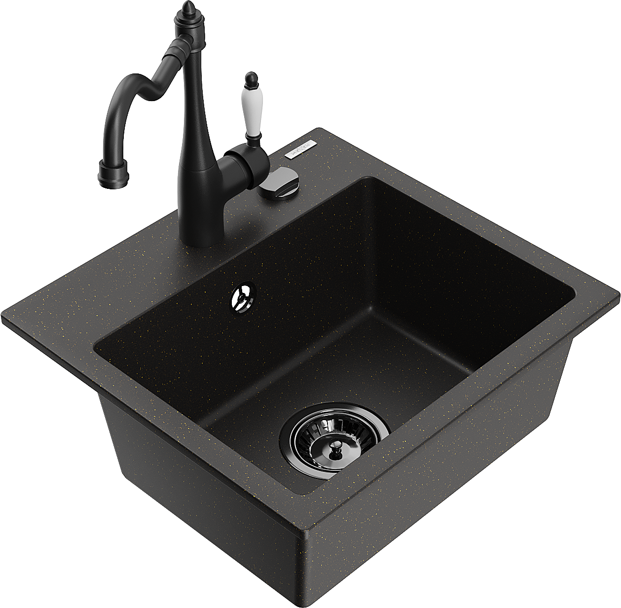 Mexen Milo гранитна мивка с 1 корито с кухненски смесител Carla, черен/златен