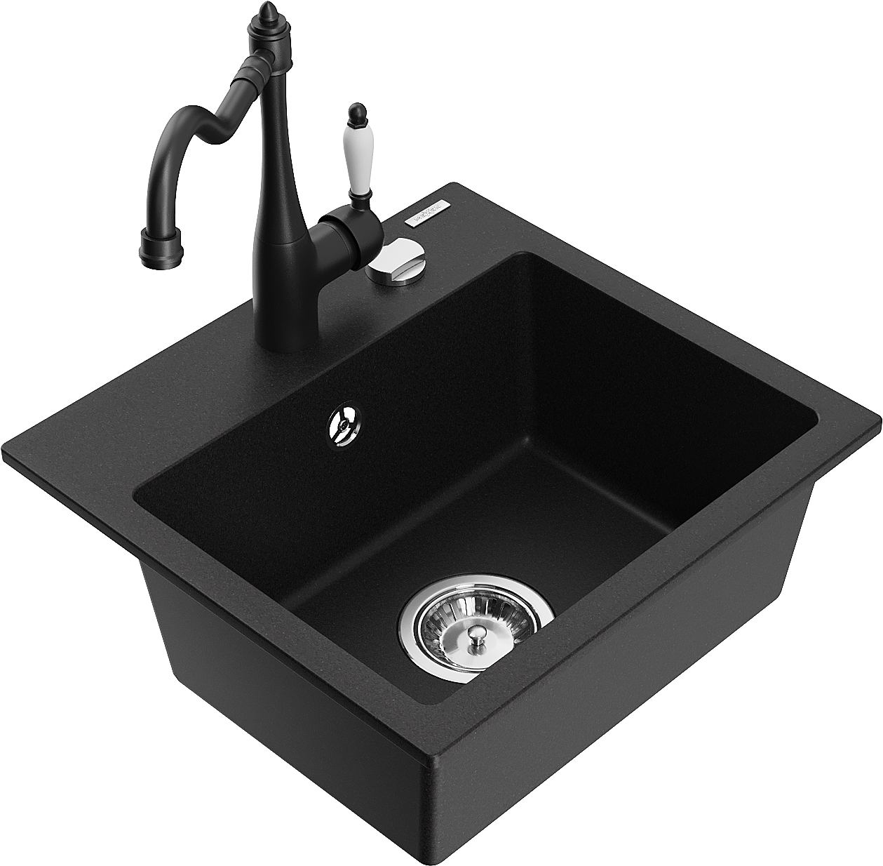 Mexen Milo гранитна кухненска мивка с 1 корито с кухненски смесител Carla, черен - 6505-77-670700-70