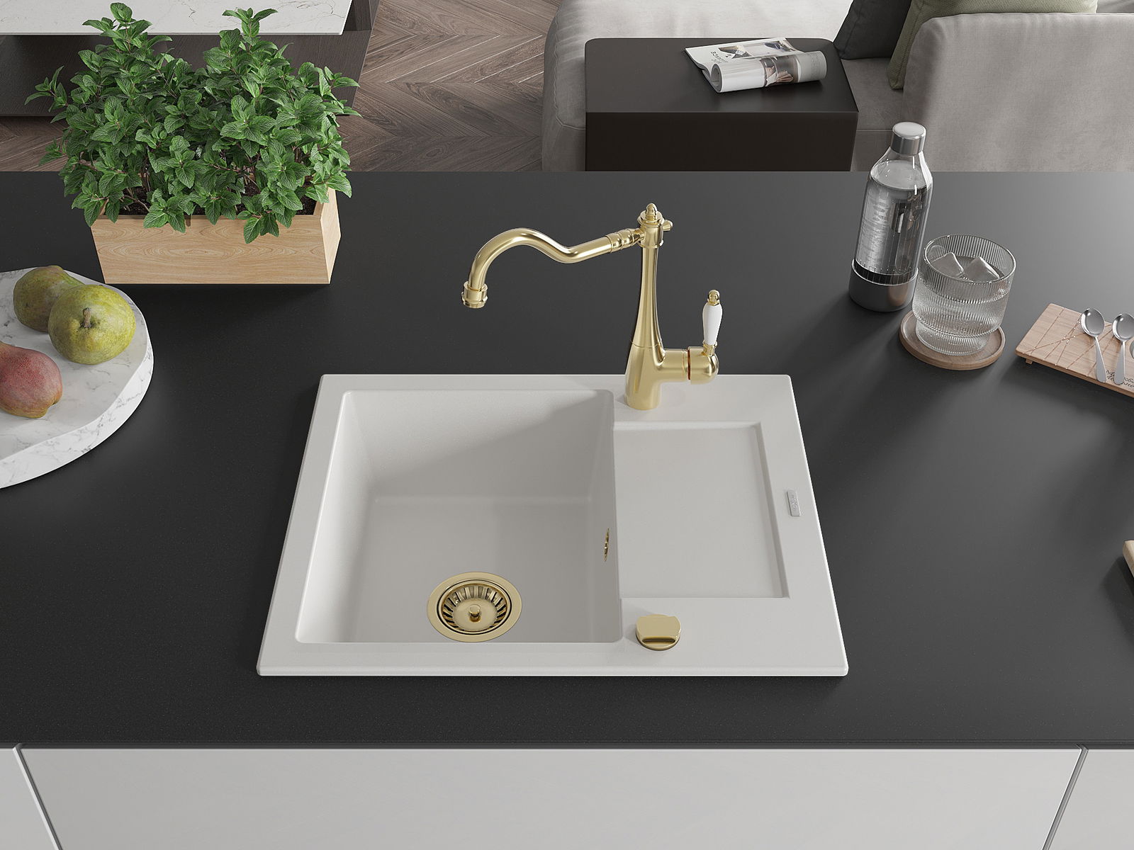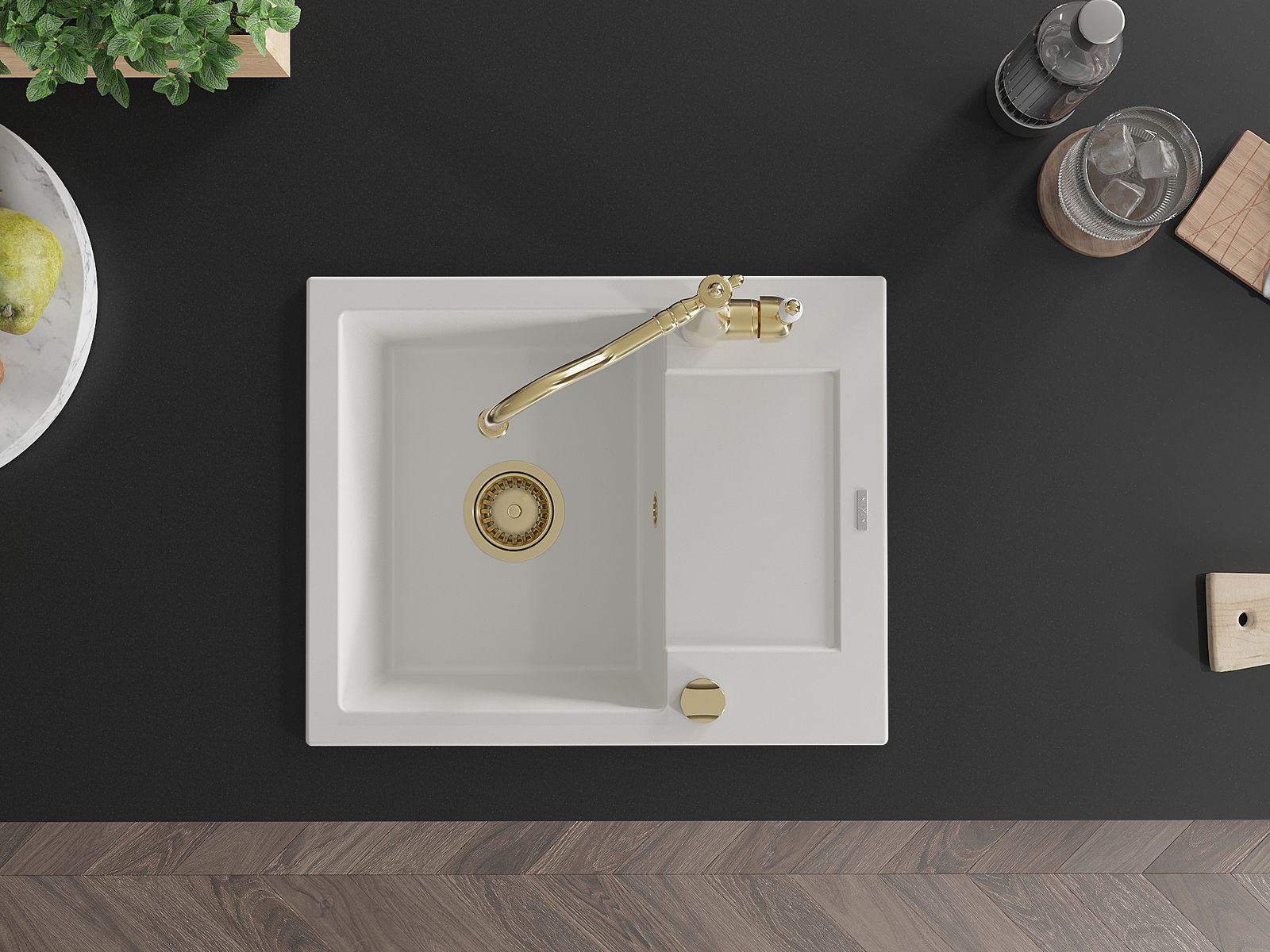 Мивката е направена от висококачествен гранит. Това е елегантно и най -вече практично допълнение към всяка кухня, независимо от нейния стил. Висококачествената и гранитна издръжливост осигуряват много години употреба.