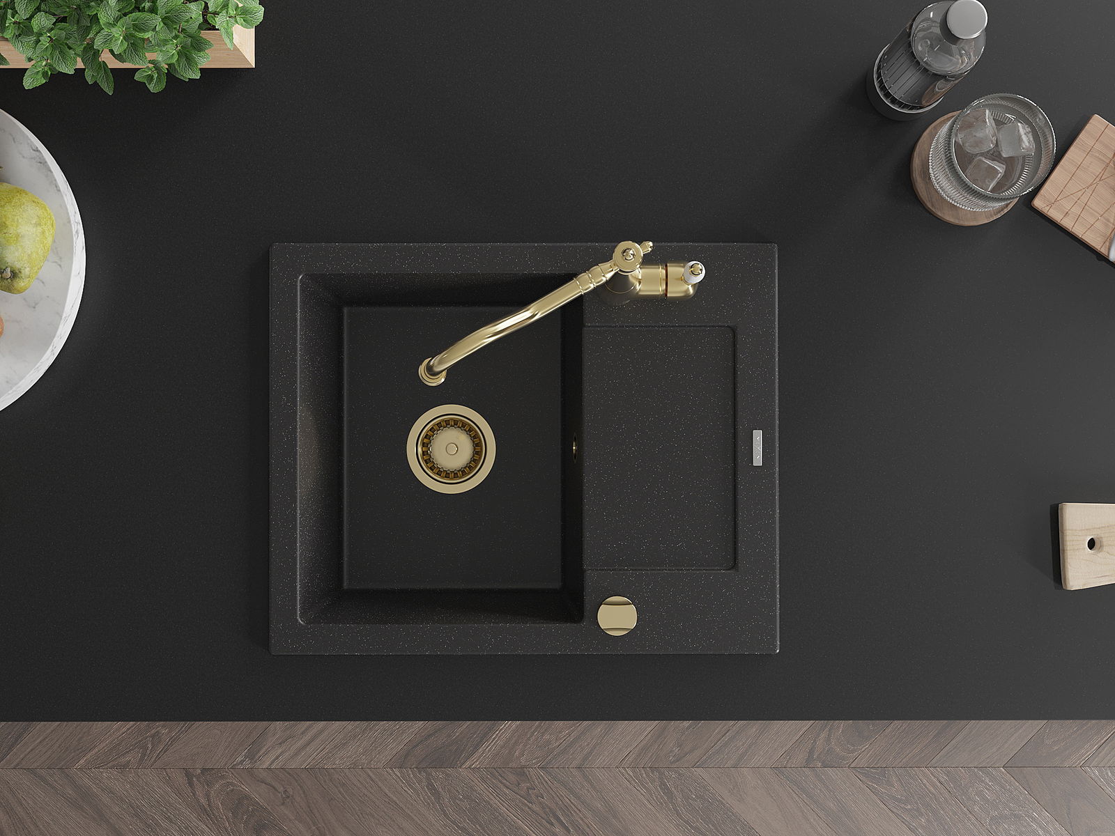 Мивката е направена от висококачествен гранит. Това е елегантно и най -вече практично допълнение към всяка кухня, независимо от нейния стил. Висококачествената и гранитна издръжливост осигуряват много години употреба.