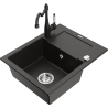 Mexen Enzo гранитна кухненска мивка с 1 корито и дренаж, и кухненски смесител Carla, черен - 6506-77-670700-70