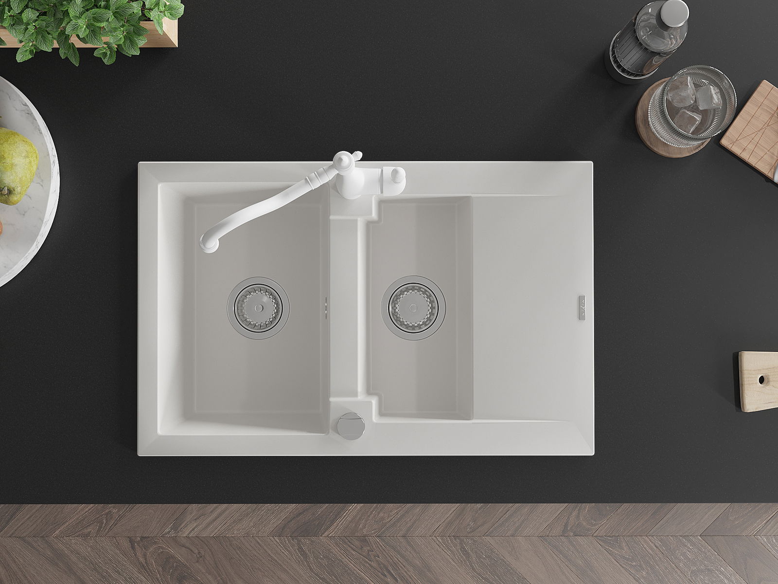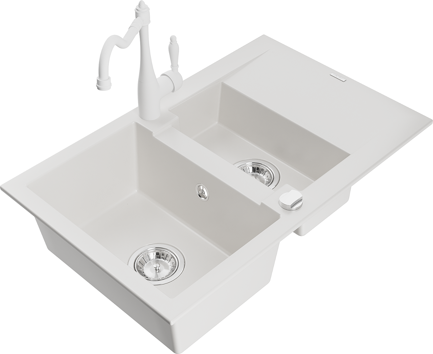 Mexen Gaspar гранитна мивка 1,5-коморна с отцедник и кухненски смесител Carla, бял - 6507-20-670700-20