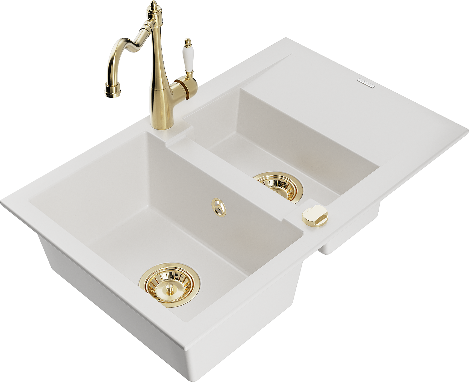 Mexen Gaspar гранитна мивка 1,5-коморна с отцедник и кухненски смесител Carla, бял - 6507-20-670700-50