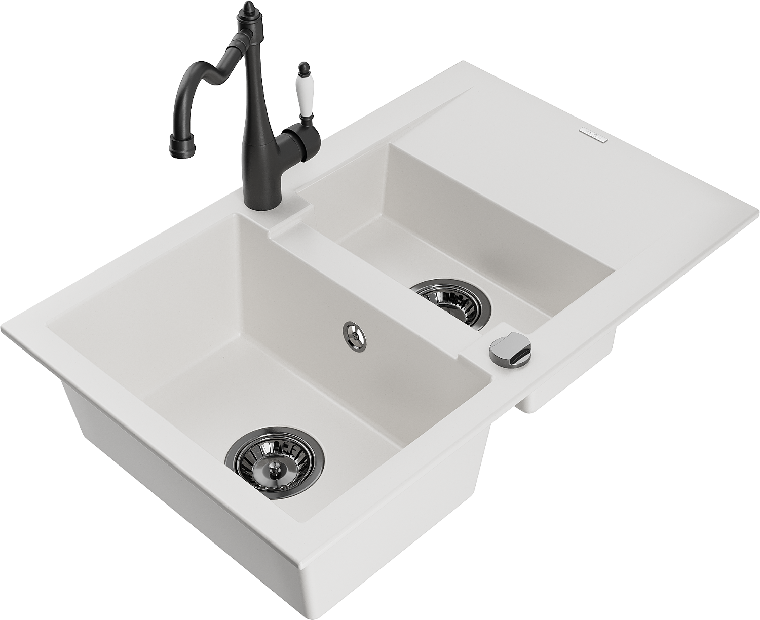 Mexen Gaspar гранитна мивка 1,5-камерна с дренаж и кухненски смесител Carla, бял - 6507-20-670700-70