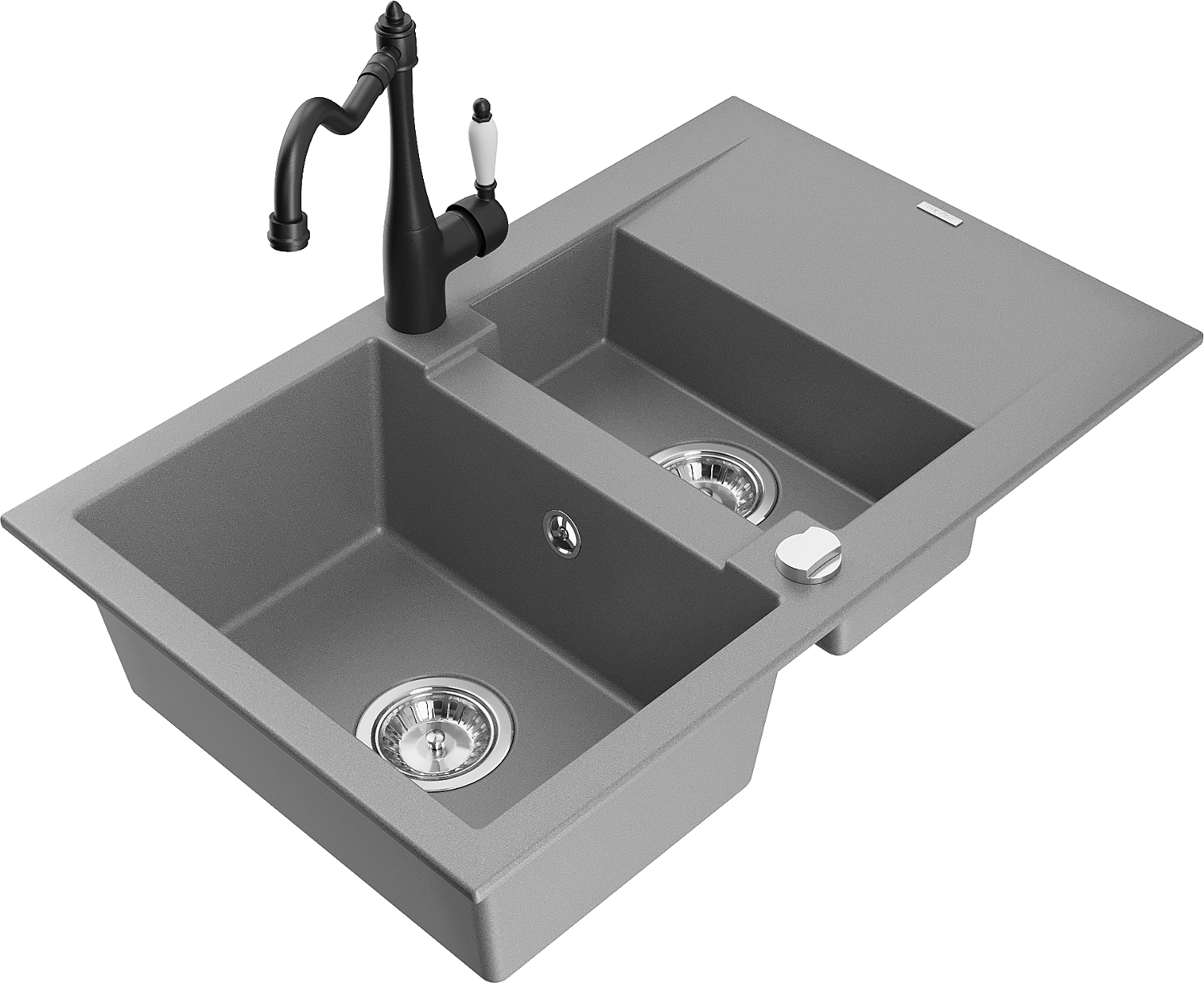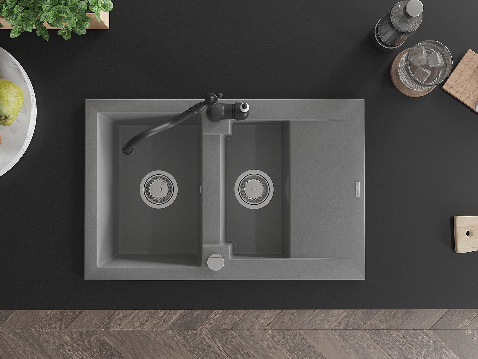 Mexen Gaspar гранитна кухненска мивка 1,5-каморна с отцедник и батерия Carla, сива - 6507-71-670700-70