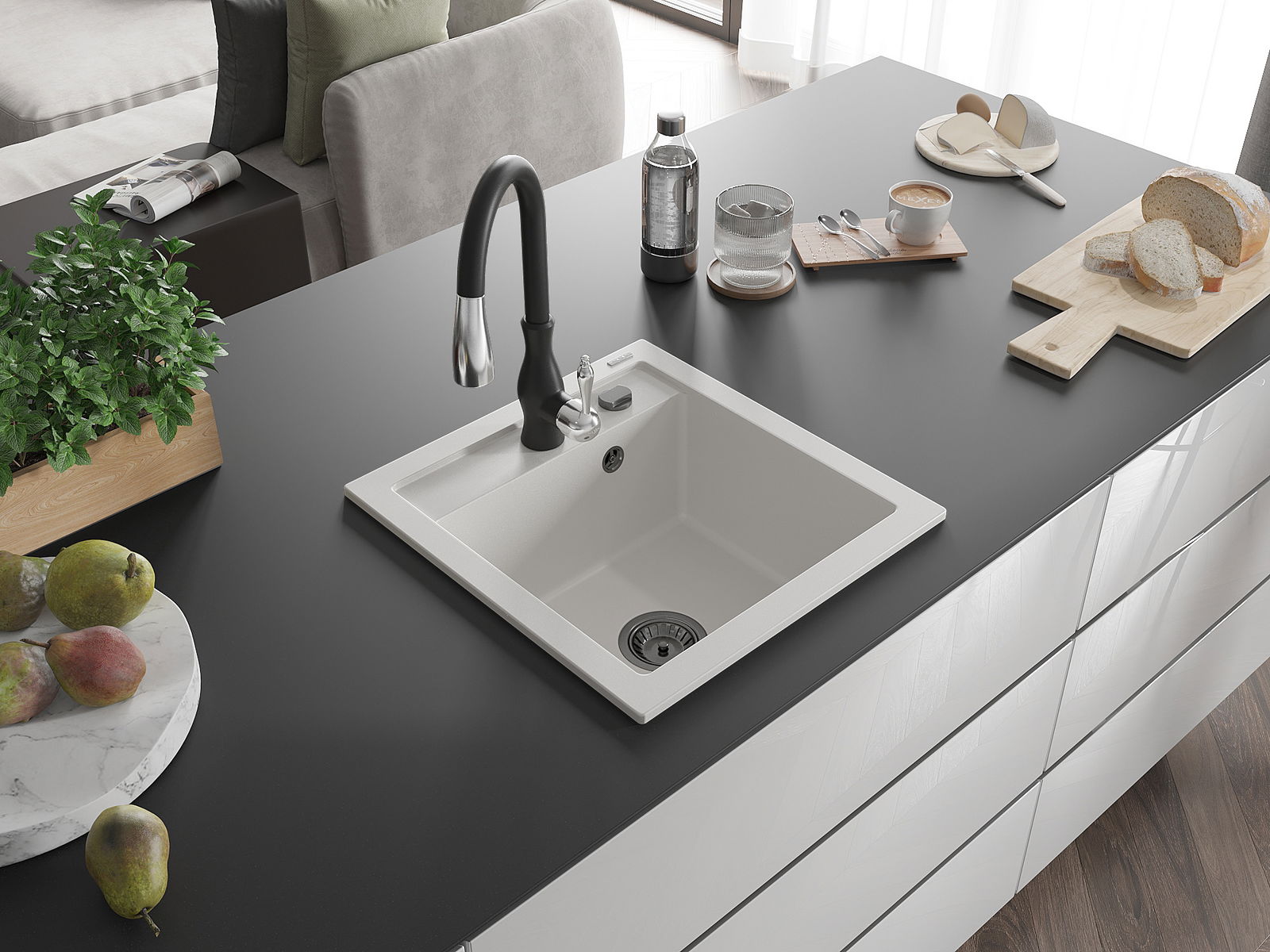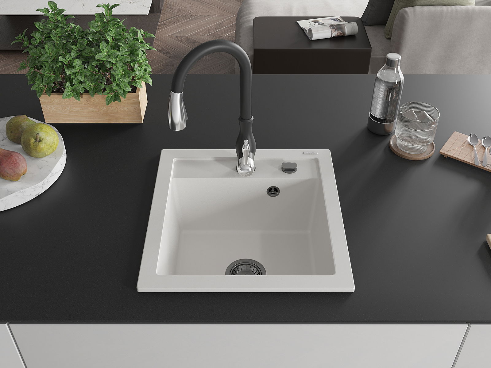 Мивката е направена от висококачествен гранит. Това е елегантно и най -вече практично допълнение към всяка кухня, независимо от нейния стил. Висококачествената и гранитна издръжливост осигуряват много години употреба.