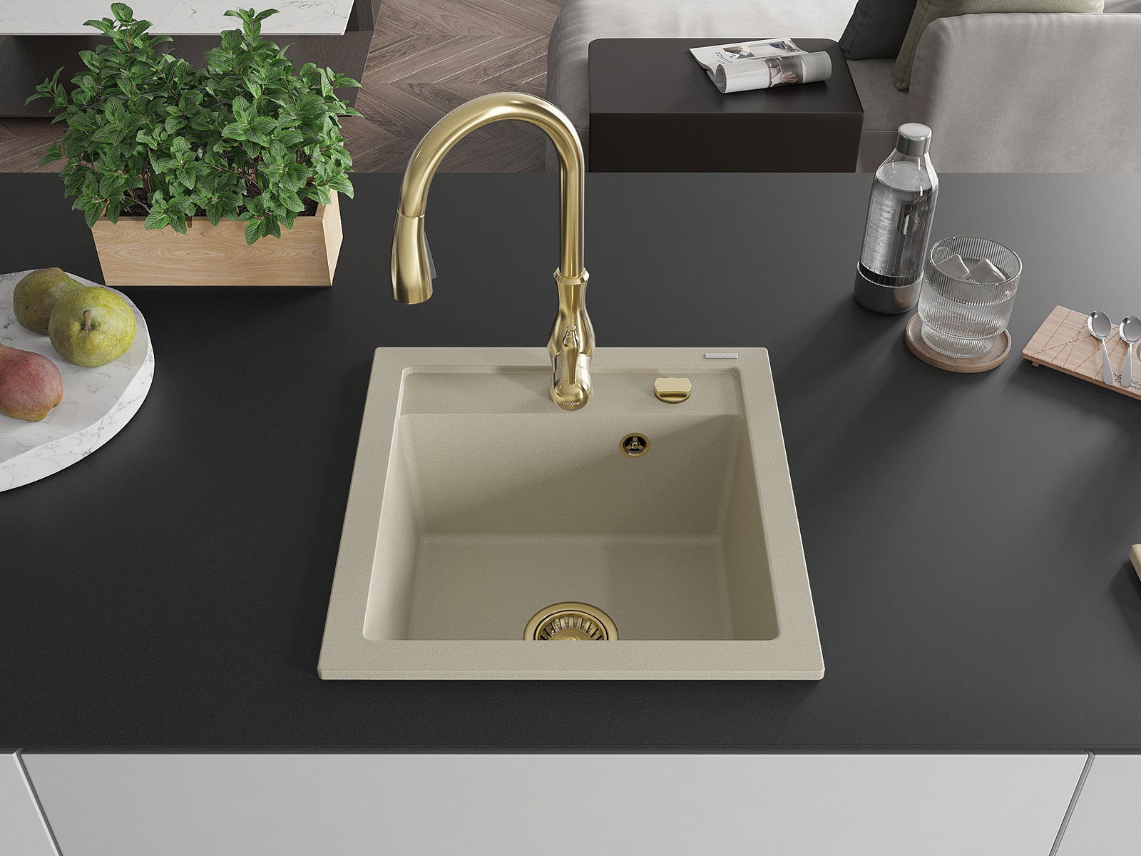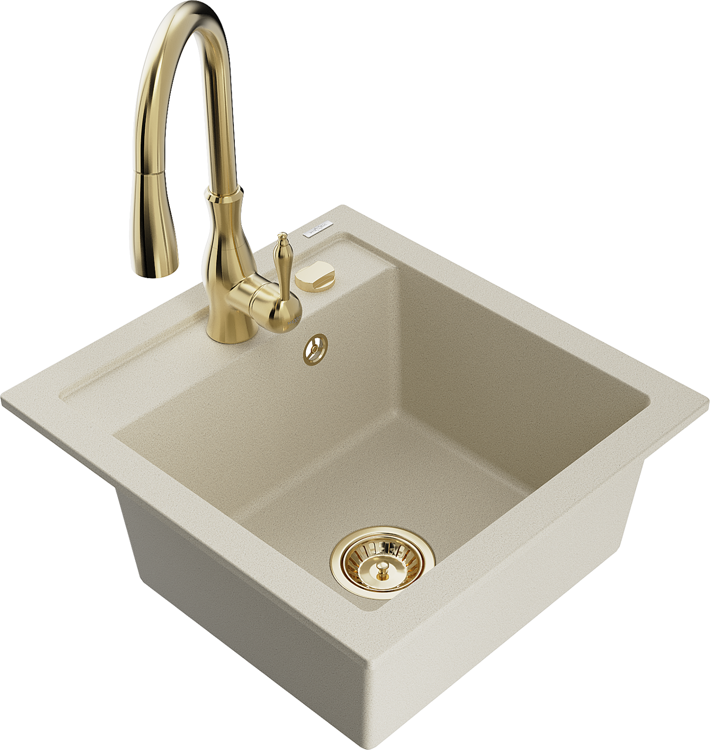 Mexen Vito гранитна мивка с 1 камера с кухненски кран Савита, бежов