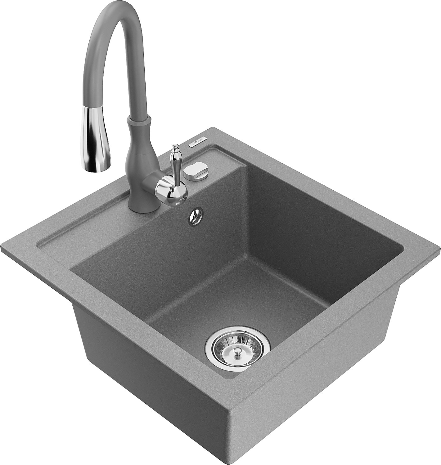 Granitна кухненска мивка Mexen Vito с 1 отделение и кухненски смесител Savita, сив - 6503-71-672601-71