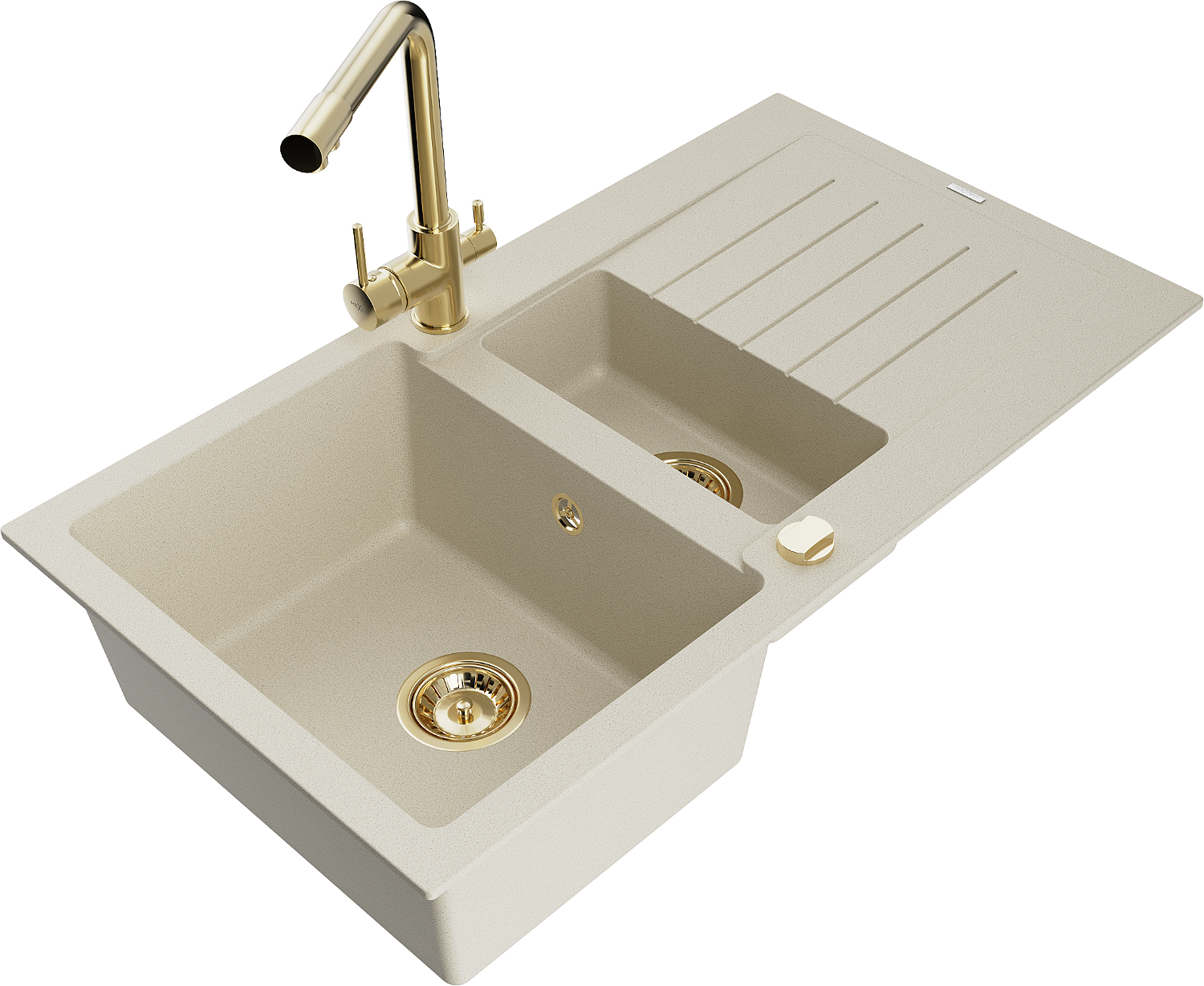 Mexen Matias гранитна мивка с 1,5 отделения, отцедник и кухненски смесител Duero, бежов - 6502-69-671600-50
