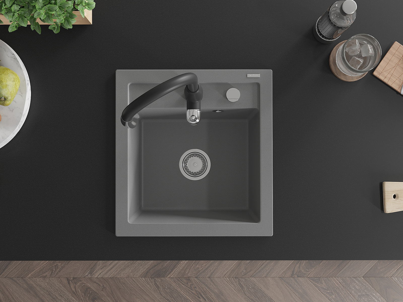 Mexen Vito кухненска мивка от гранит с 1 корито и с кухненски елемент Savita, сив - 6503-71-672601-70