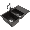 Мивка от гранит Mexen Gaspar с 1,5 камери с отцедник и кухненски смесител Carla, черна - 6507-77-670700-70