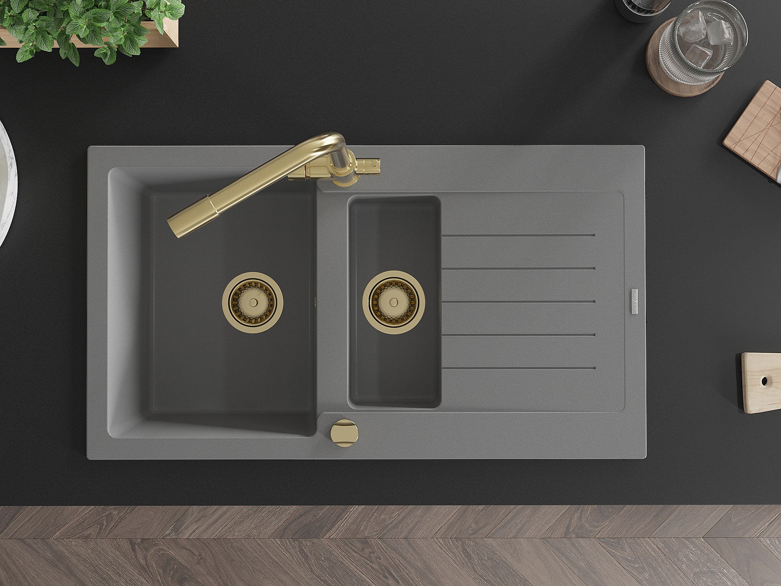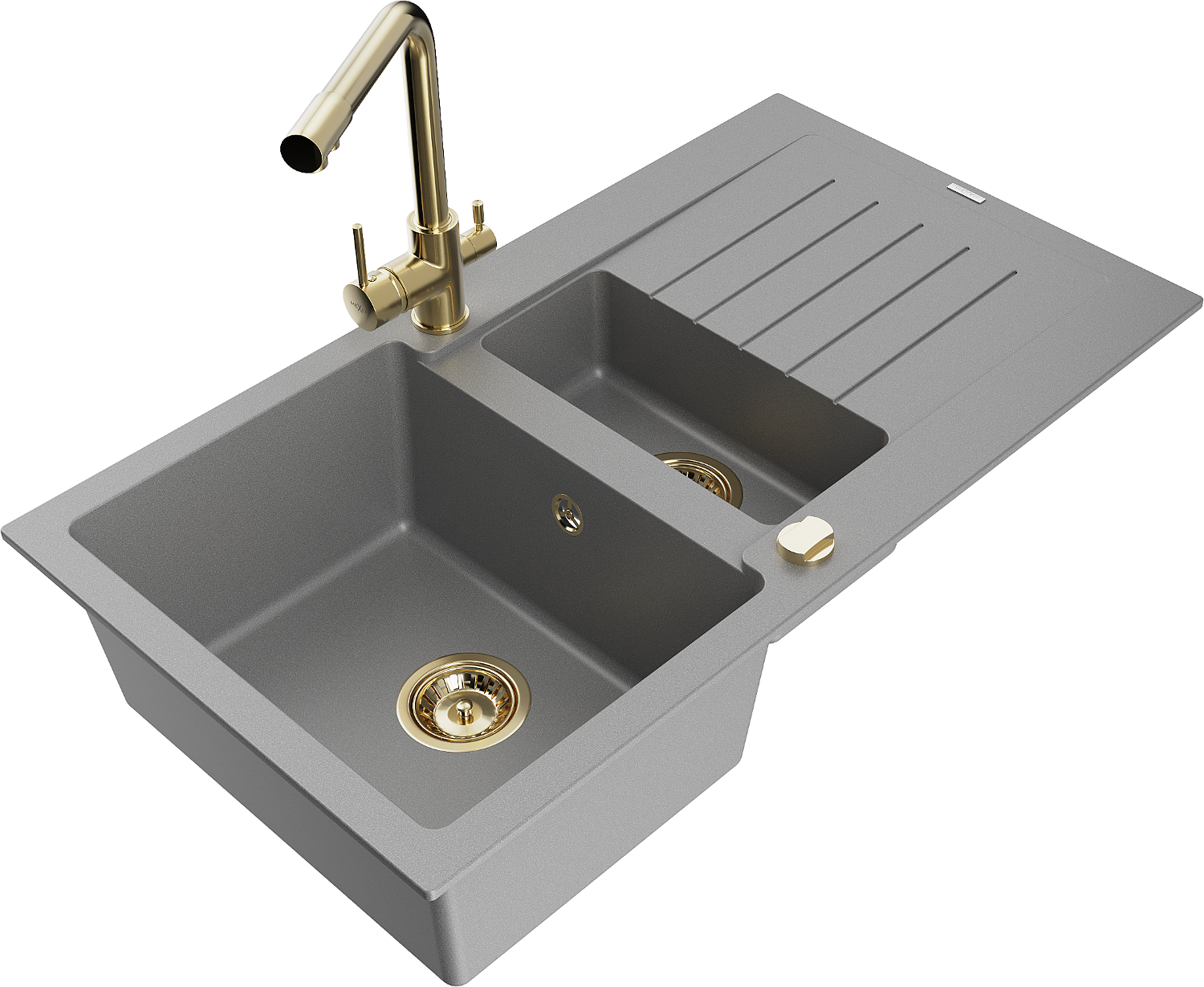 Мексен Матиас гранитна мивка 1,5-камерна с отцедник и кухненски смесител Дуеро, сив - 6502-71-671600-50
