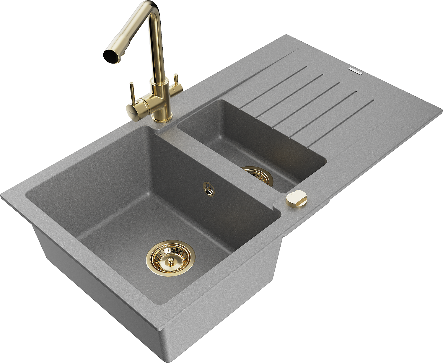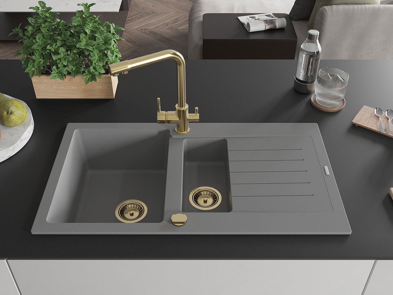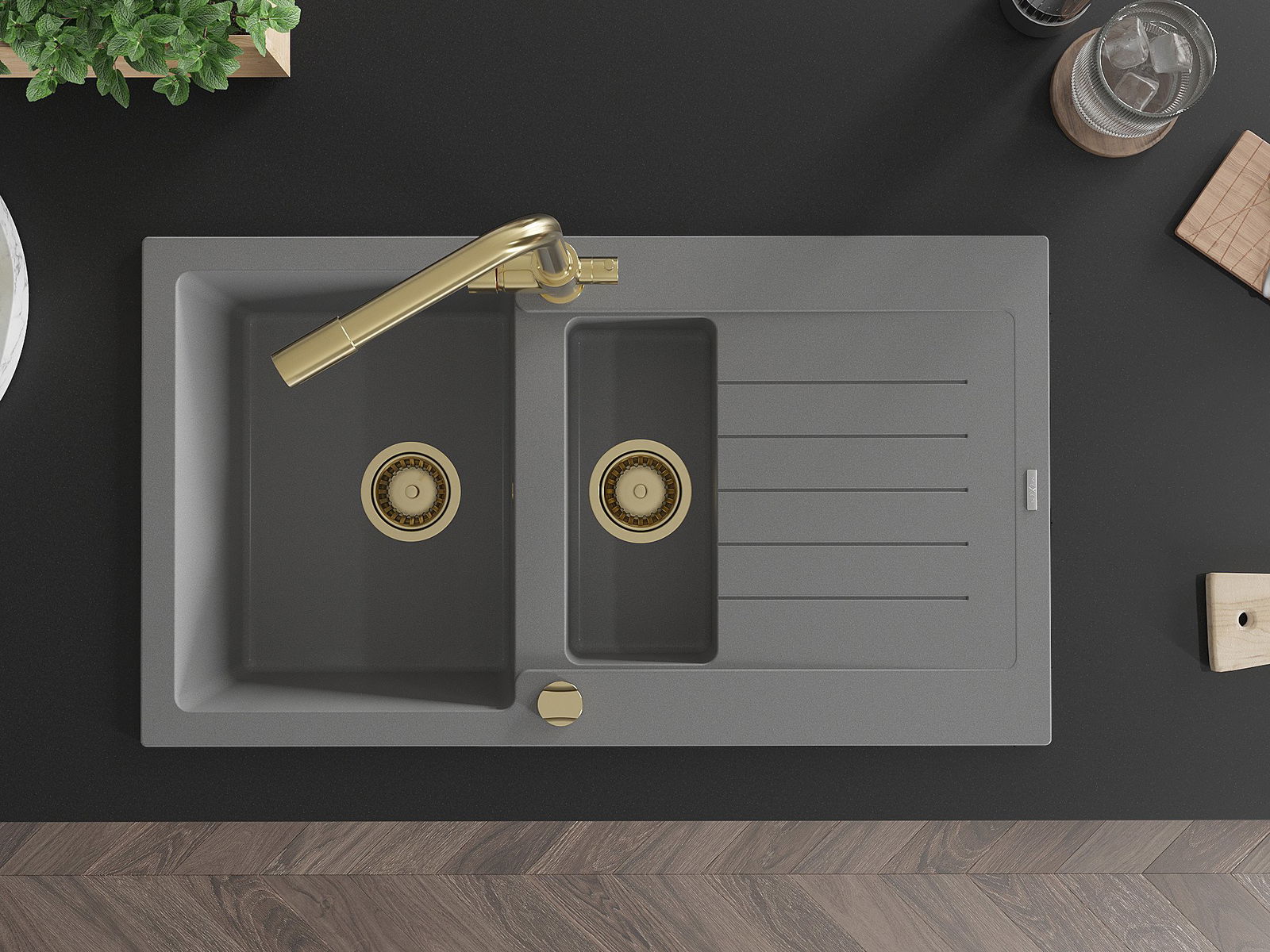 Mexen Matias гранитна мивка с 1,5 камери с отцедник и кухненски смесител