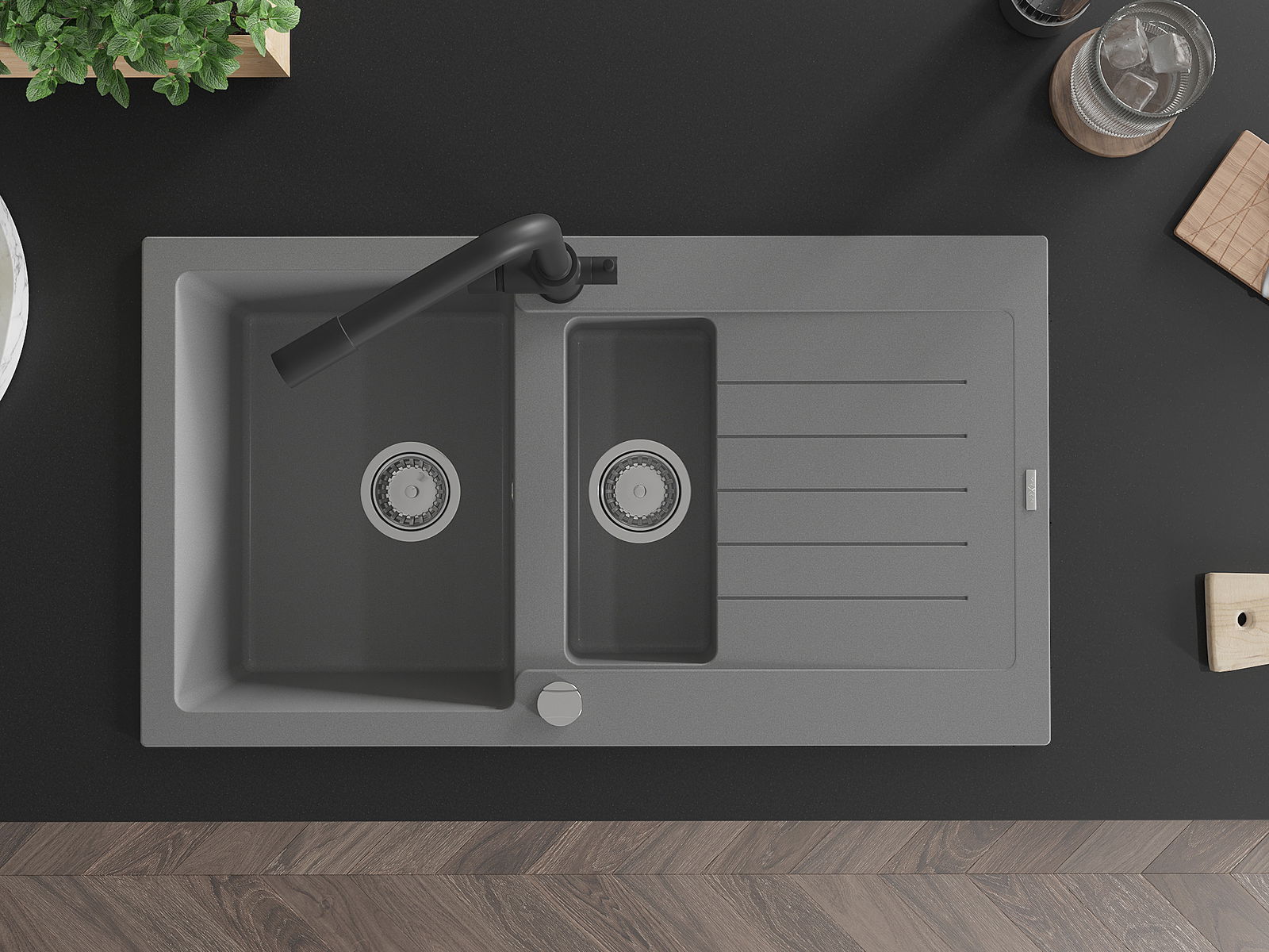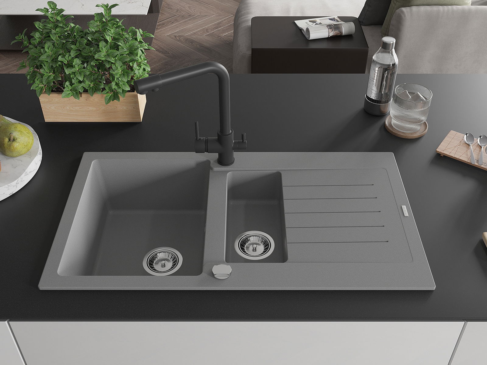 Мивката е направена от висококачествен гранит. Това е елегантно и най -вече практично допълнение към всяка кухня, независимо от нейния стил. Висококачествената и гранитна издръжливост осигуряват много години употреба.