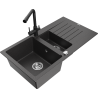 Mexen Matias гранитна мивка 1,5-камерна с отцедник и кухненски смесител Duero, сива - 6502-71-671600-70