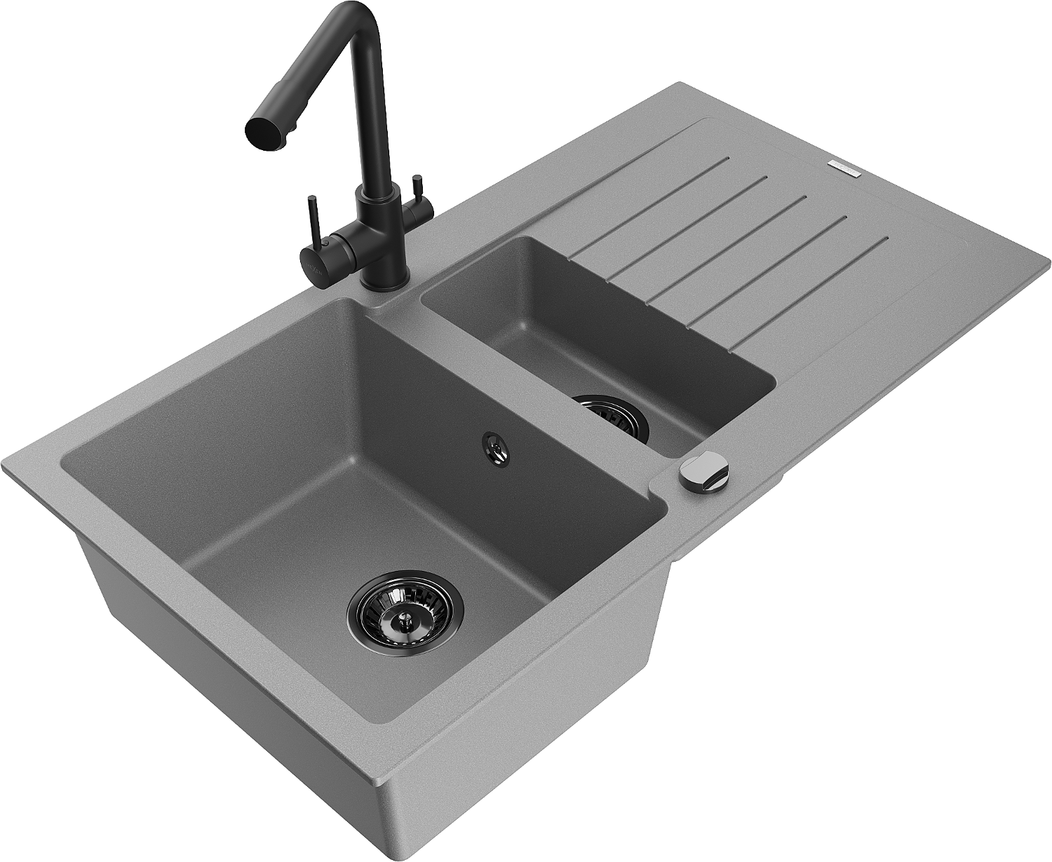 Mexen Matias гранитна мивка 1,5-коморна с отцедник и кухненски смесител Duero, сив - 6502-71-671600-70-B