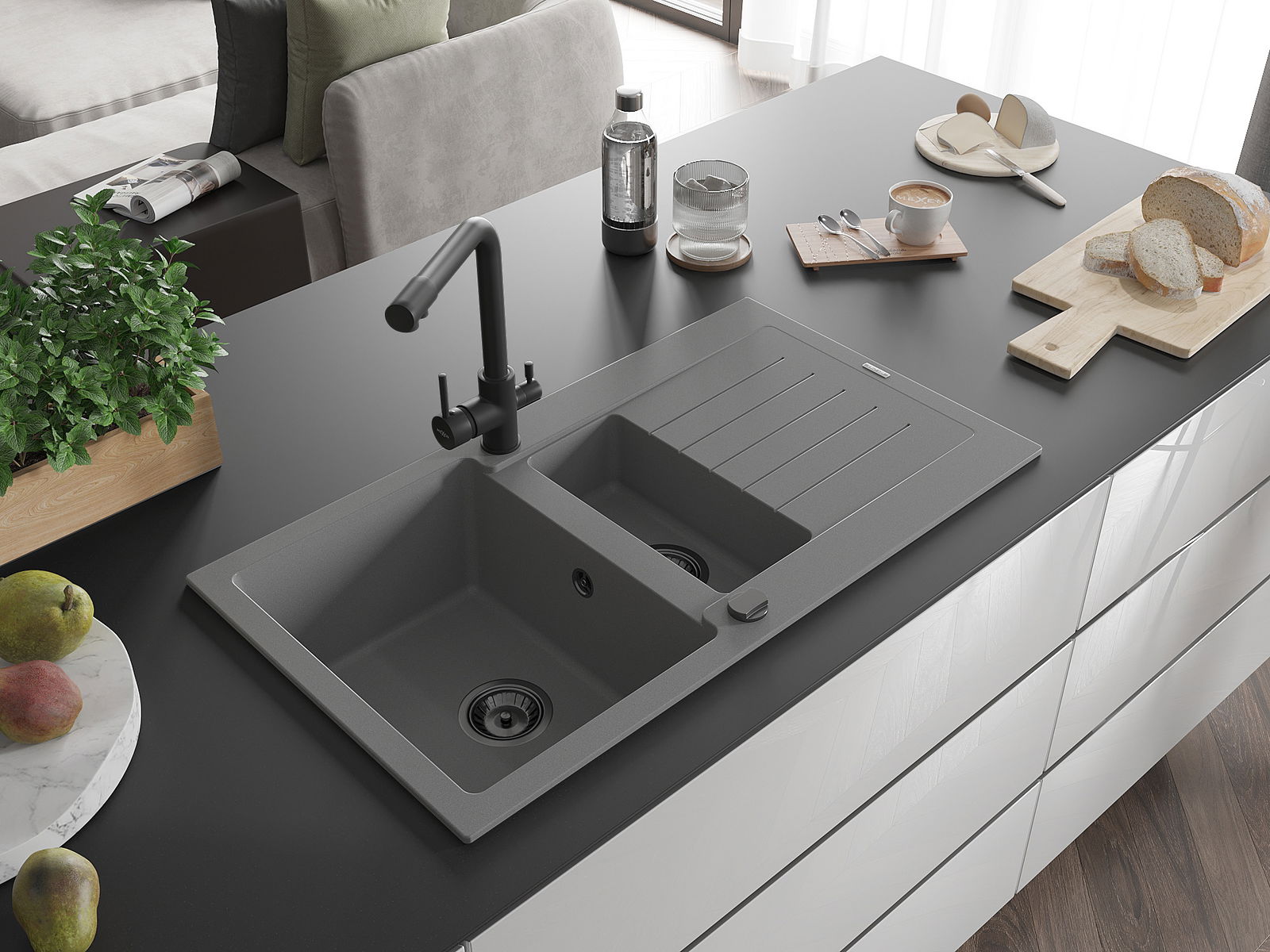 Мивката е направена от висококачествен гранит. Това е елегантно и най -вече практично допълнение към всяка кухня, независимо от нейния стил. Висококачествената и гранитна издръжливост осигуряват много години употреба.