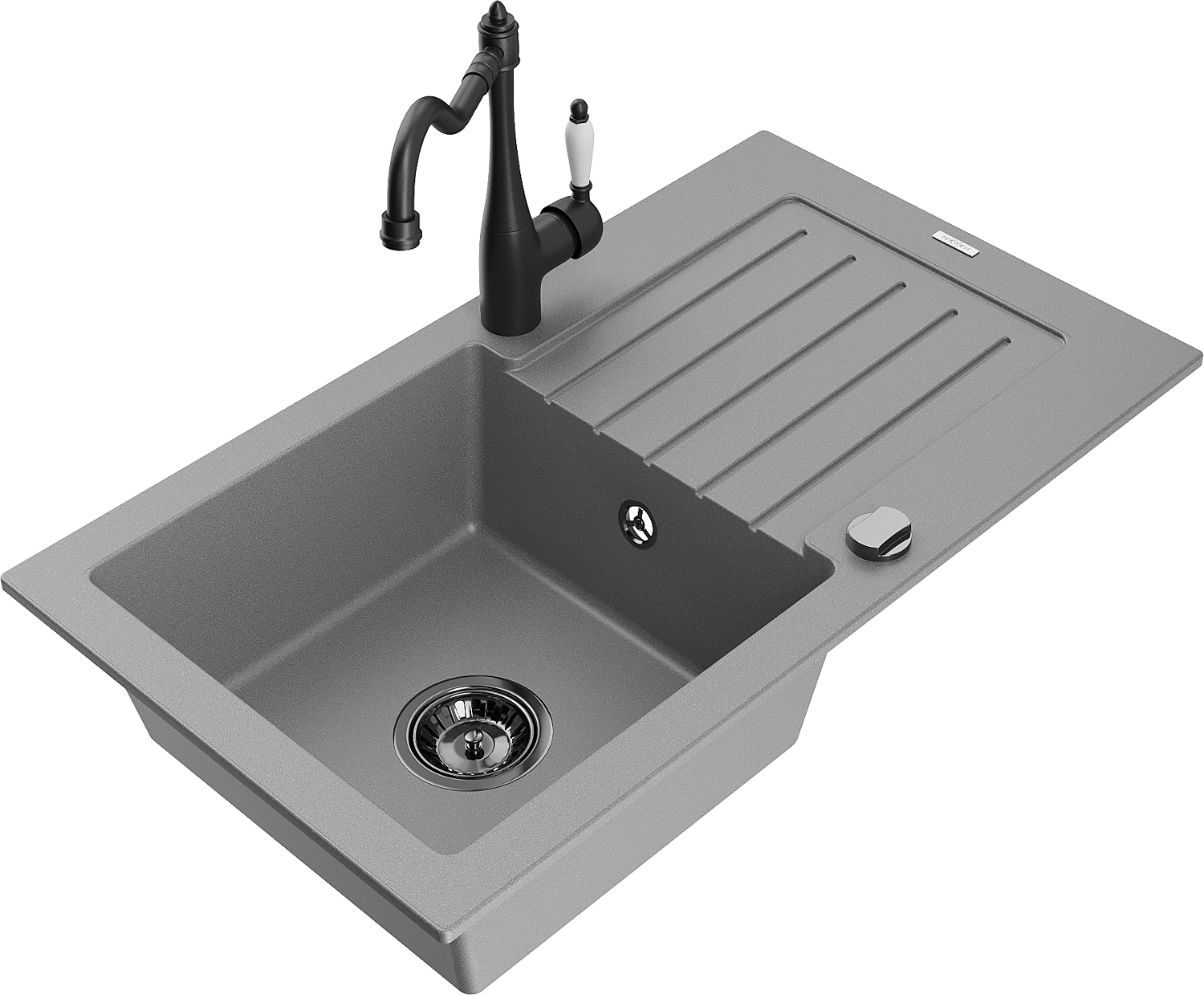 Mexen Pablo гранитна мивка 1-камерна с отцедник и кухненски смесител Carla, сив - 6510-71-670700-70-B