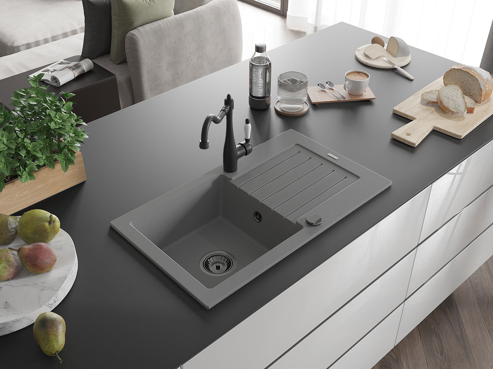 Мивката е направена от висококачествен гранит. Това е елегантно и най -вече практично допълнение към всяка кухня, независимо от нейния стил. Висококачествената и гранитна издръжливост осигуряват много години употреба.