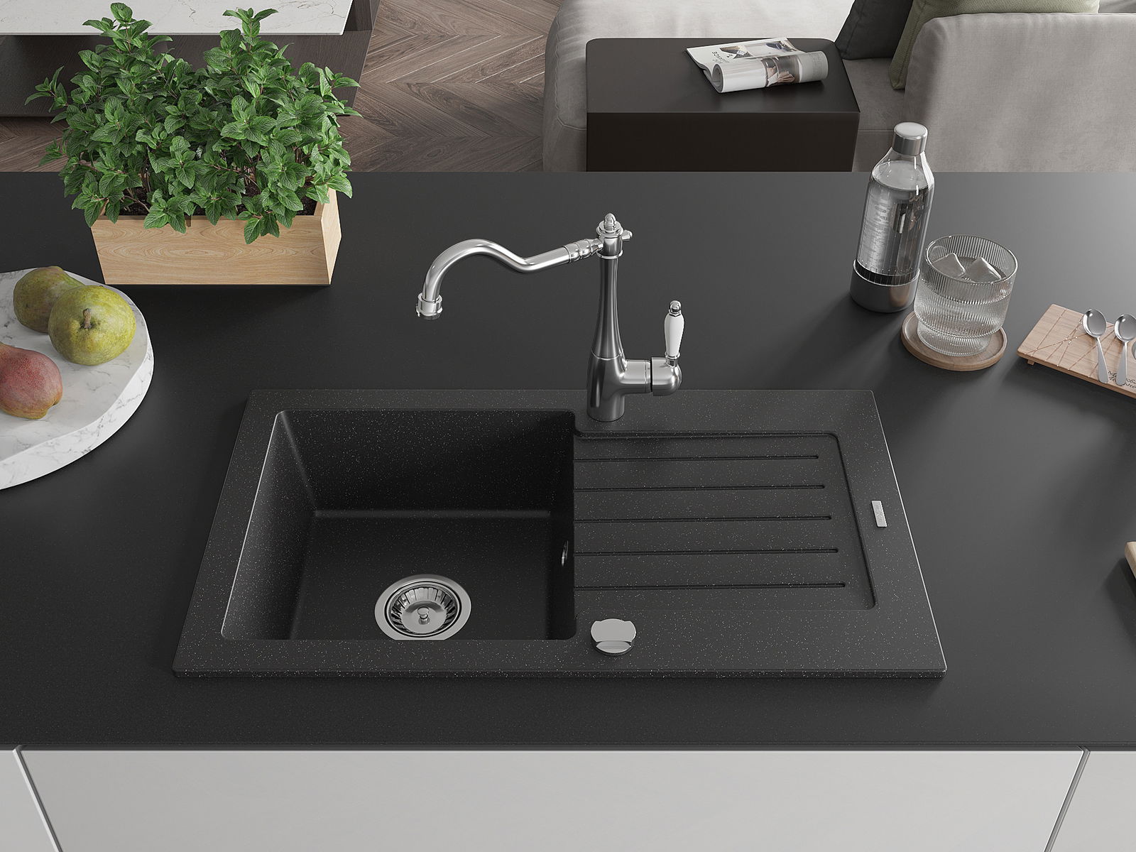 Мивката е направена от висококачествен гранит. Това е елегантно и най -вече практично допълнение към всяка кухня, независимо от нейния стил. Висококачествената и гранитна издръжливост осигуряват много години употреба.