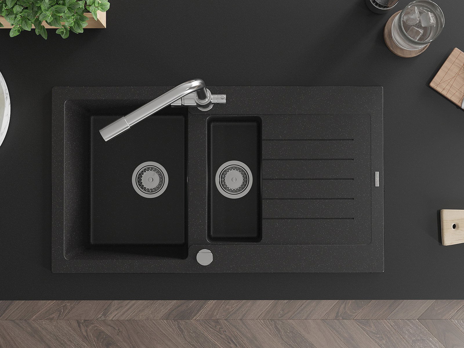 Mexen Matias гранитна мивка с 1,5 камери с отцедник и кухненски смесител Duero,