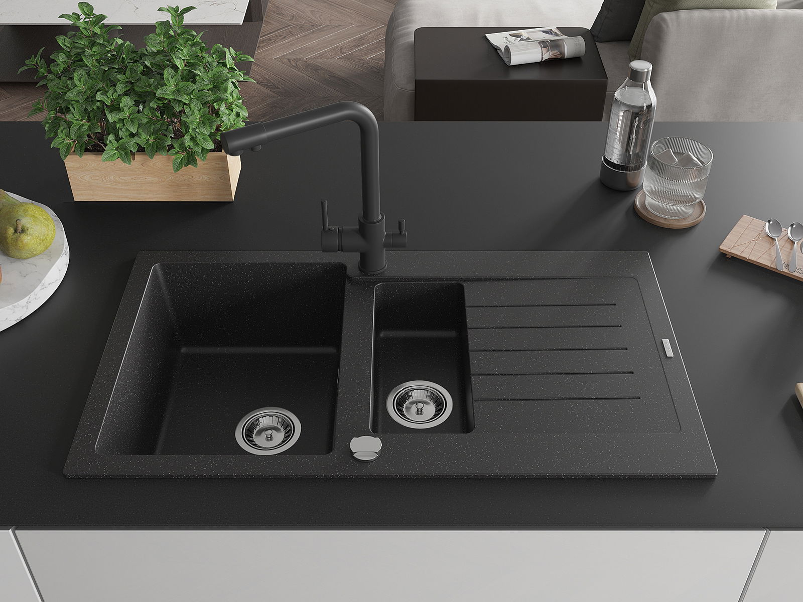 Мивката е направена от висококачествен гранит. Това е елегантно и най -вече практично допълнение към всяка кухня, независимо от нейния стил. Висококачествената и гранитна издръжливост осигуряват много години употреба.