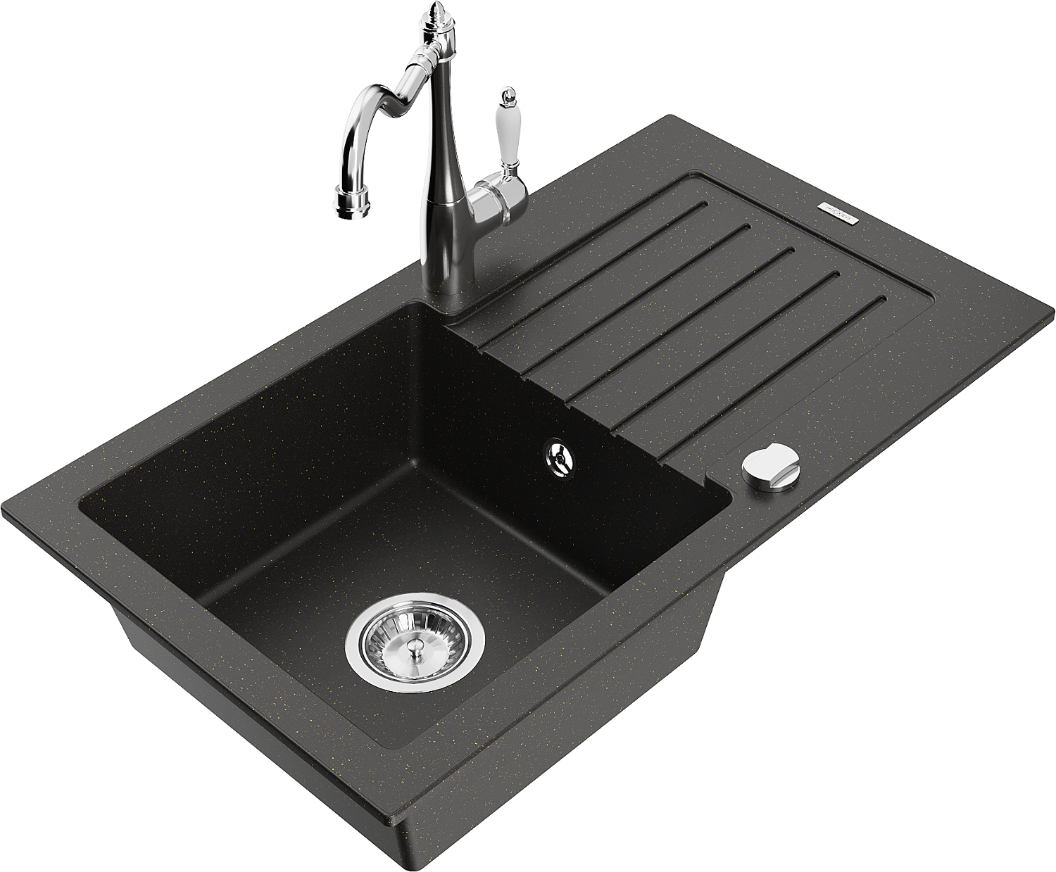 Mexen Pablo гранитна мивка с 1 отделение с отцеждане и кухненски смесител