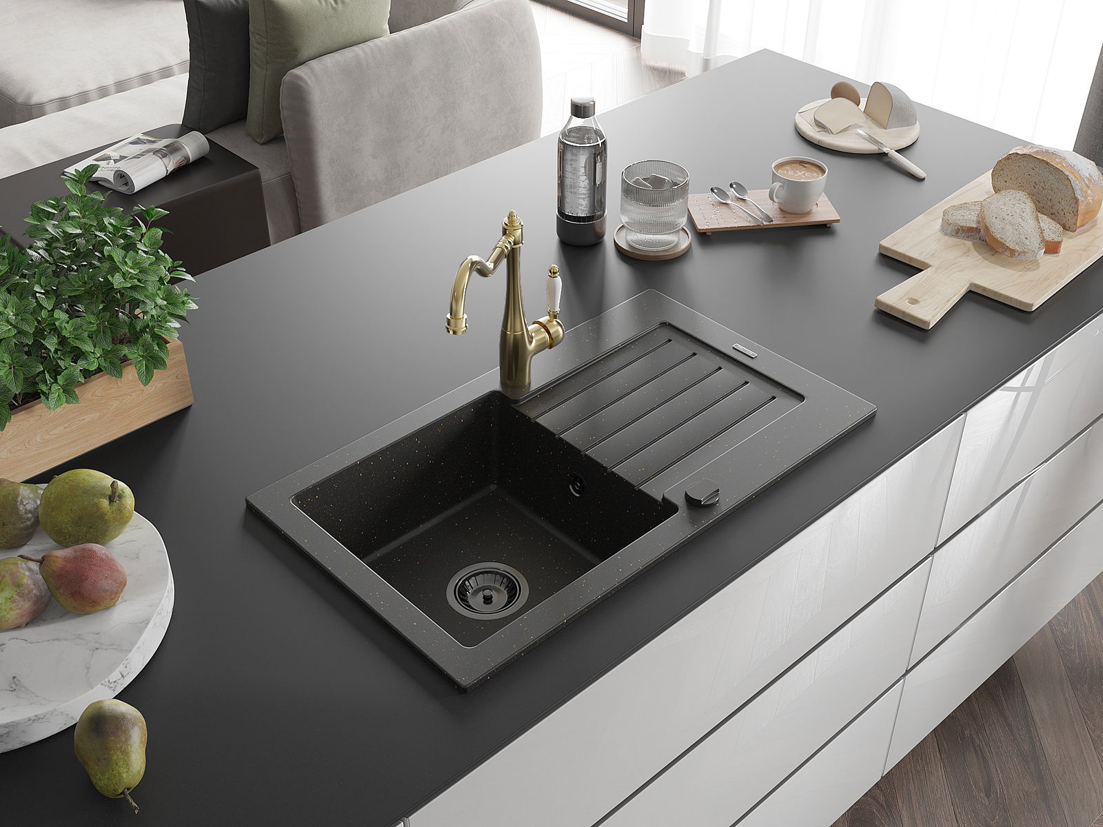 Мивката е направена от висококачествен гранит. Това е елегантно и най -вече практично допълнение към всяка кухня, независимо от нейния стил. Висококачествената и гранитна издръжливост осигуряват много години употреба.