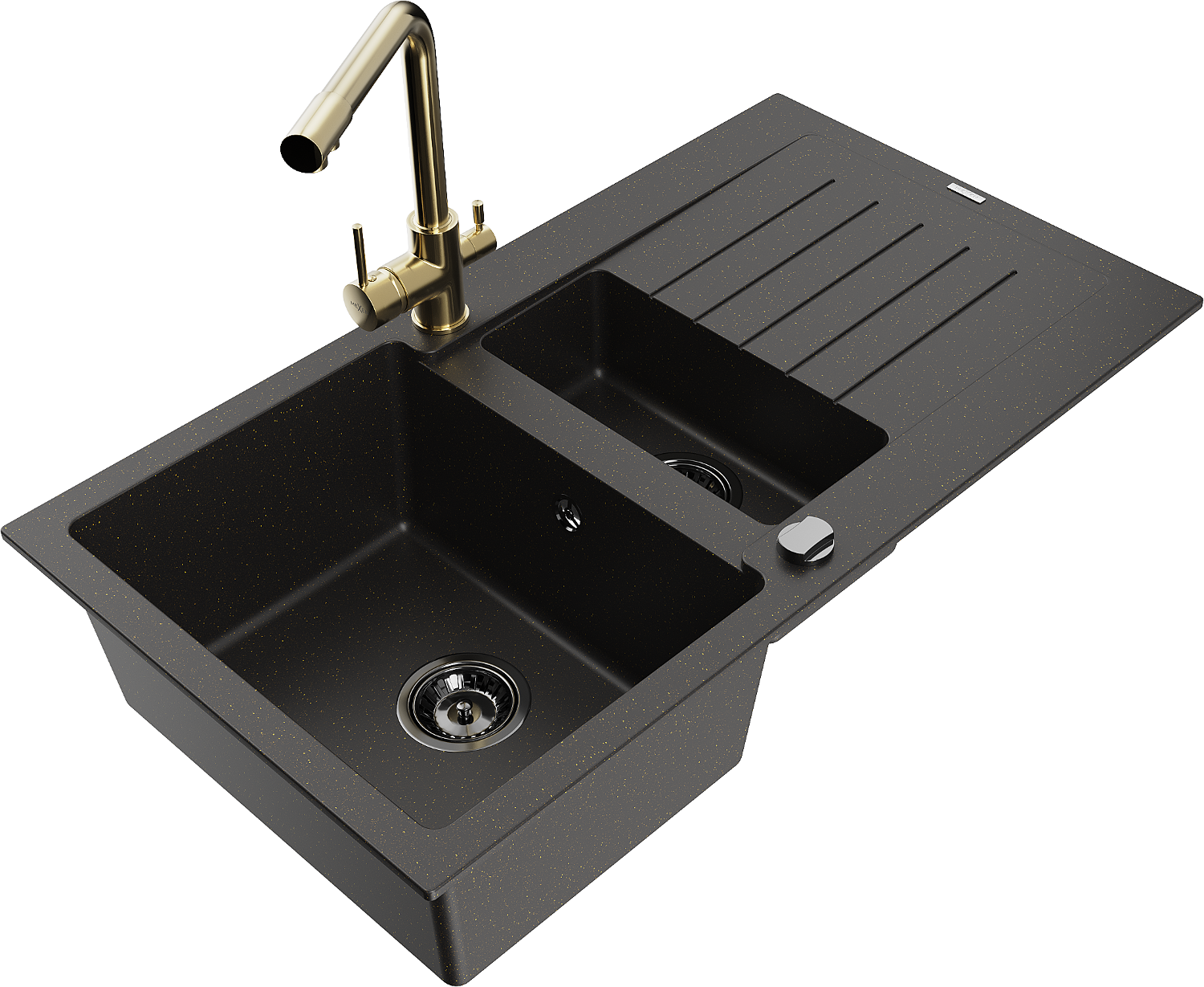 Mexen Matias гранитна мивка с 1,5 камери с отцедник и кухненски смесител Duero, черен/златен - 6502-75-671600-50-B