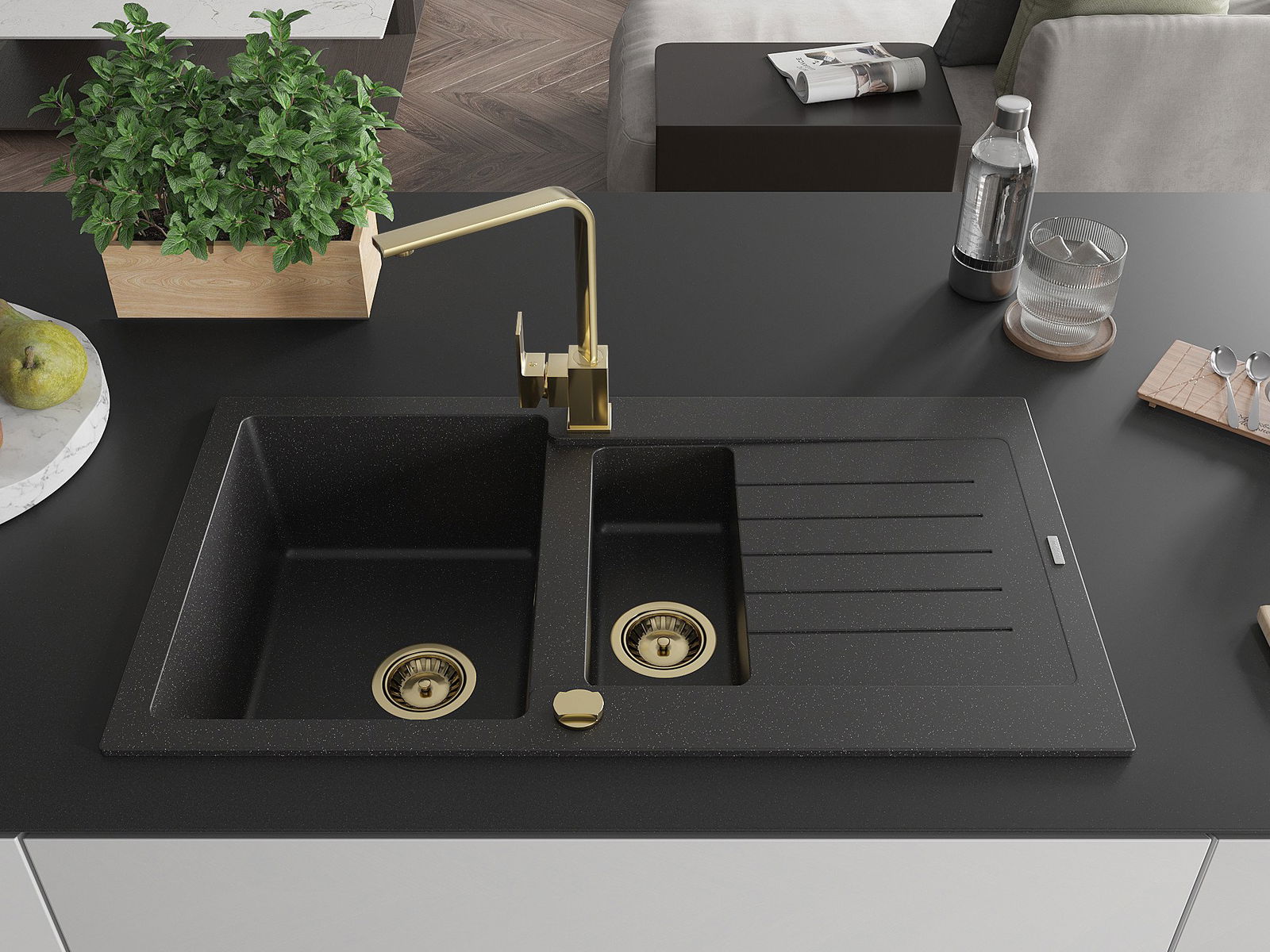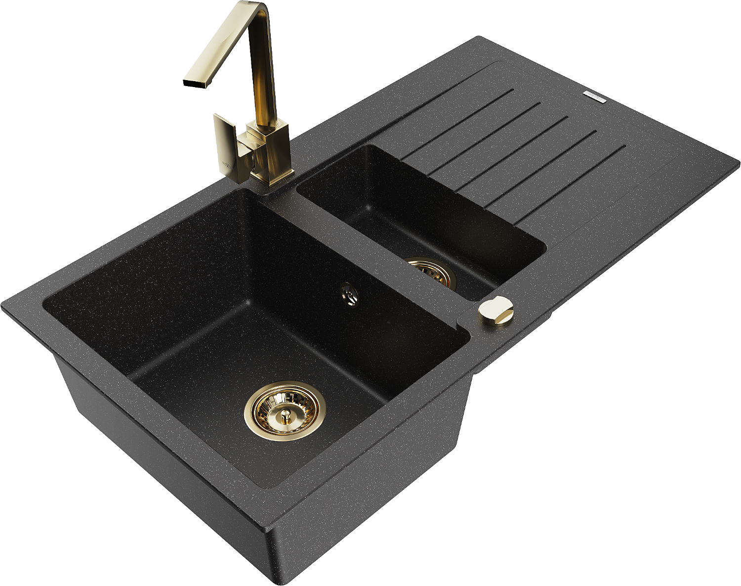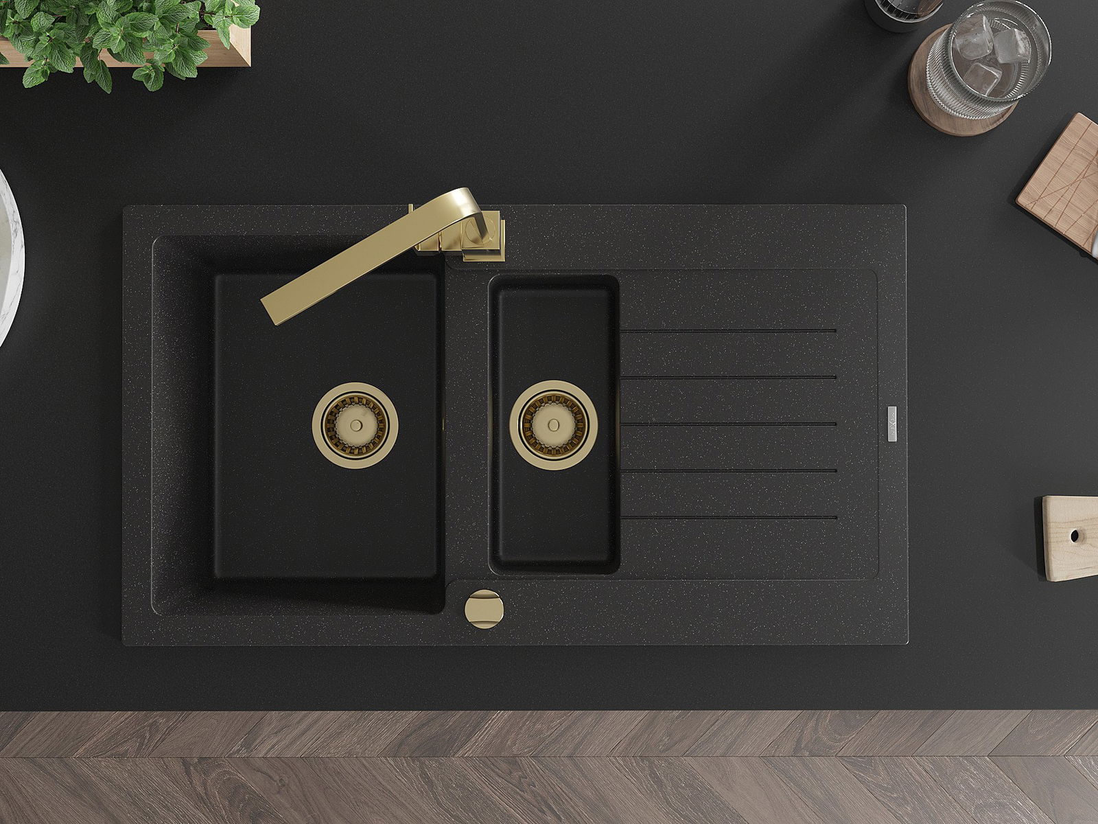 Mexen Matias гранитна мивка с 1,5 камери с отцедник и кухненски смесител Rita,