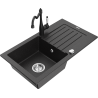 Mexen Pablo еднокоморна гранитна мивка с отцедник и кухненски смесител Carla, черно пръскано - 6510-76-670700-70