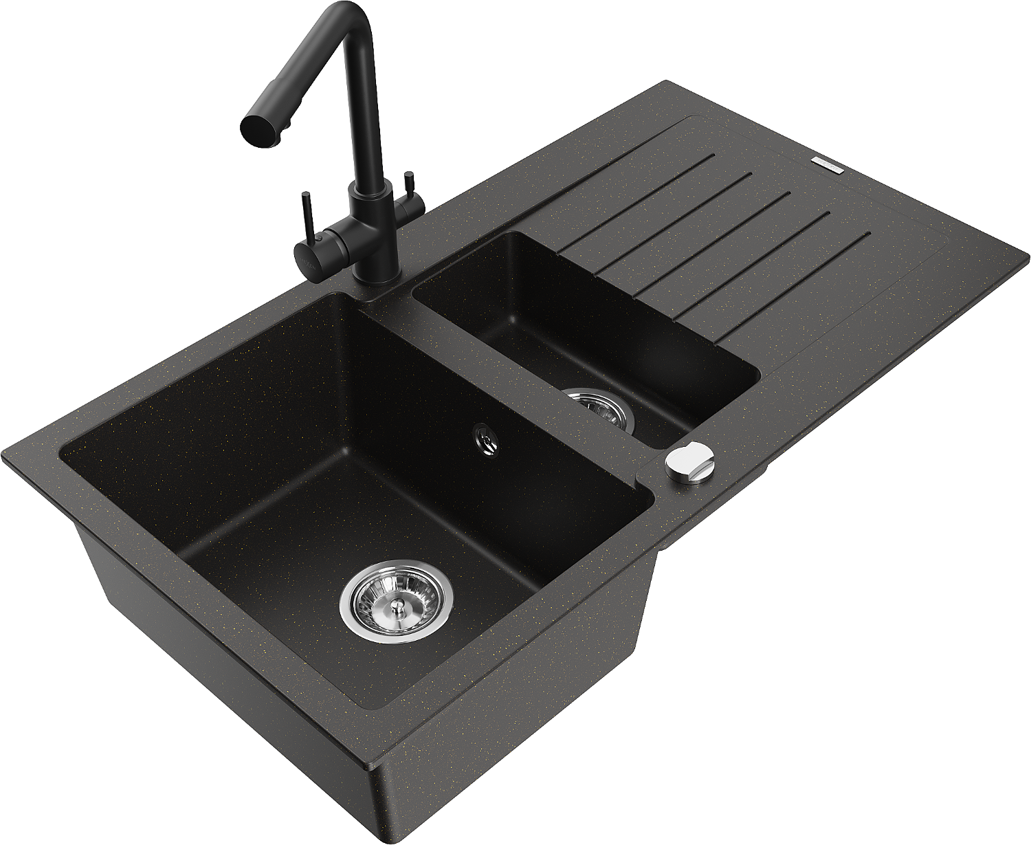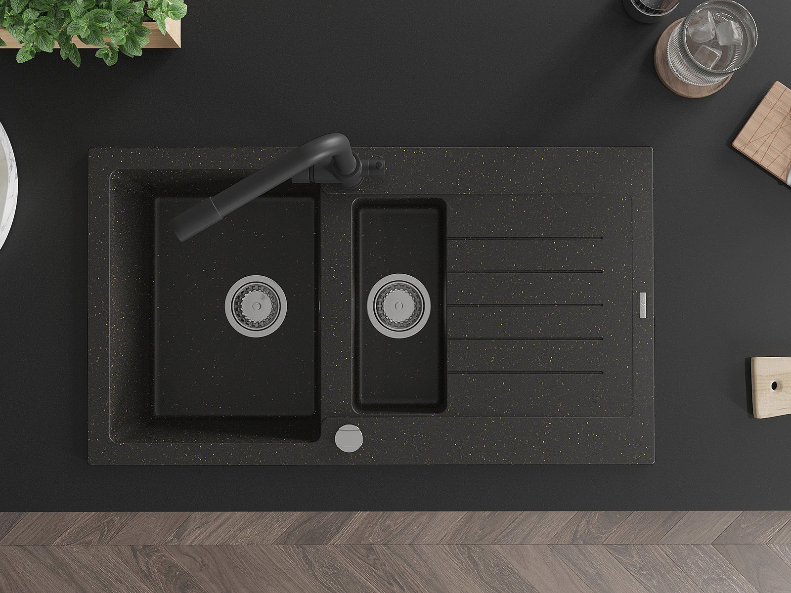 Mexen Matias гранитна мивка с 1,5 камери с отцедник и кухненски смесител Duero,