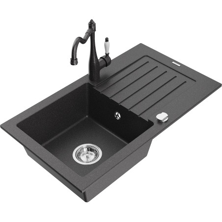 Мивка Mexen Pablo гранитна 1-коморна с отцедник и кухненски смесител Carla, черна на петна - 6510-76-670700-76