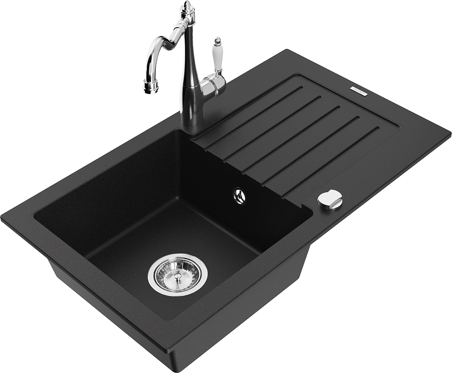Mexen Pablo мивка от гранит с 1 камера с отцедник и кухненски смесител Carla, черен - 6510-77-670700-00
