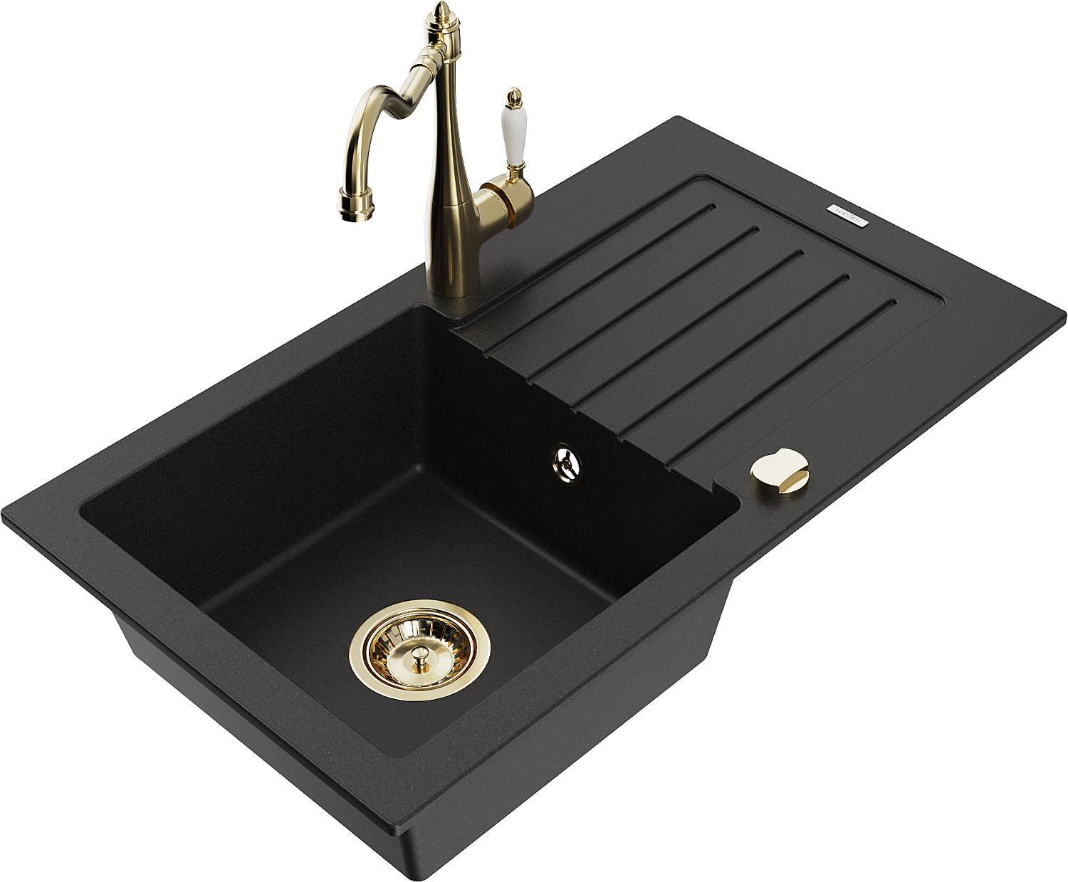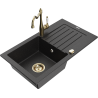 Mexen Pablo мивка за кухня от гранит с 1 отделение и отцедник и кухненски смесител Carla, черен - 6510-77-670700-50