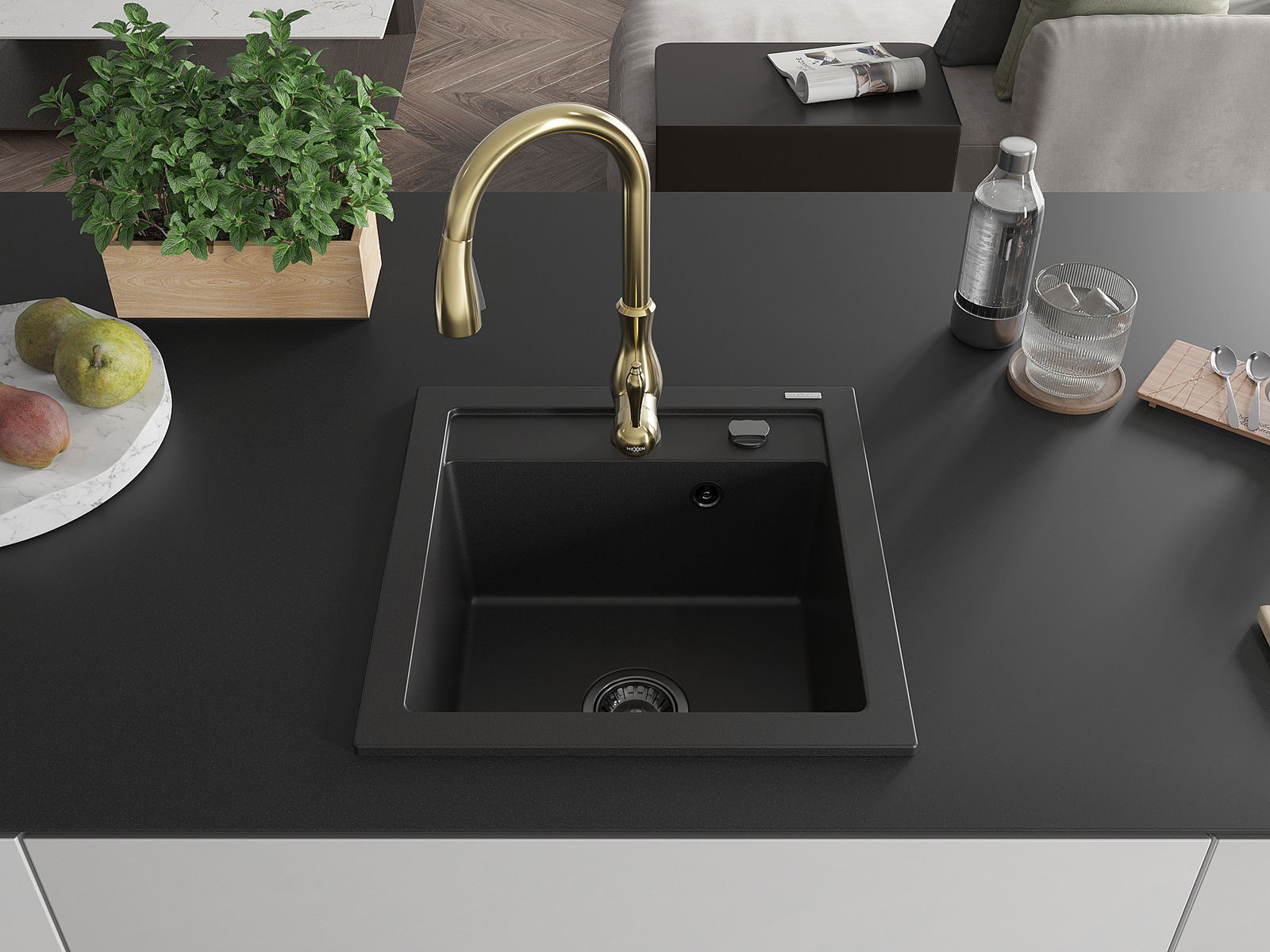 Мивката е направена от висококачествен гранит. Това е елегантно и най -вече практично допълнение към всяка кухня, независимо от нейния стил. Висококачествената и гранитна издръжливост осигуряват много години употреба.