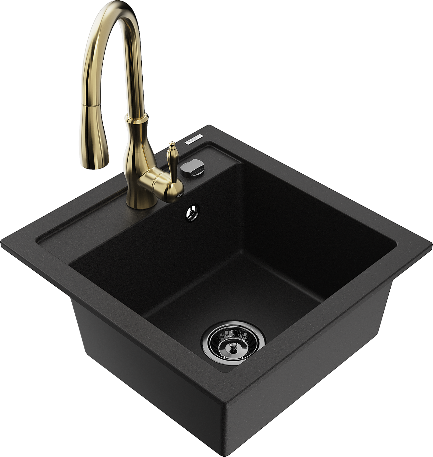 Mexen Vito еднокамерен гранитен мивка с кухненски смесител Savita, черен - 6503-77-672601-50-B
