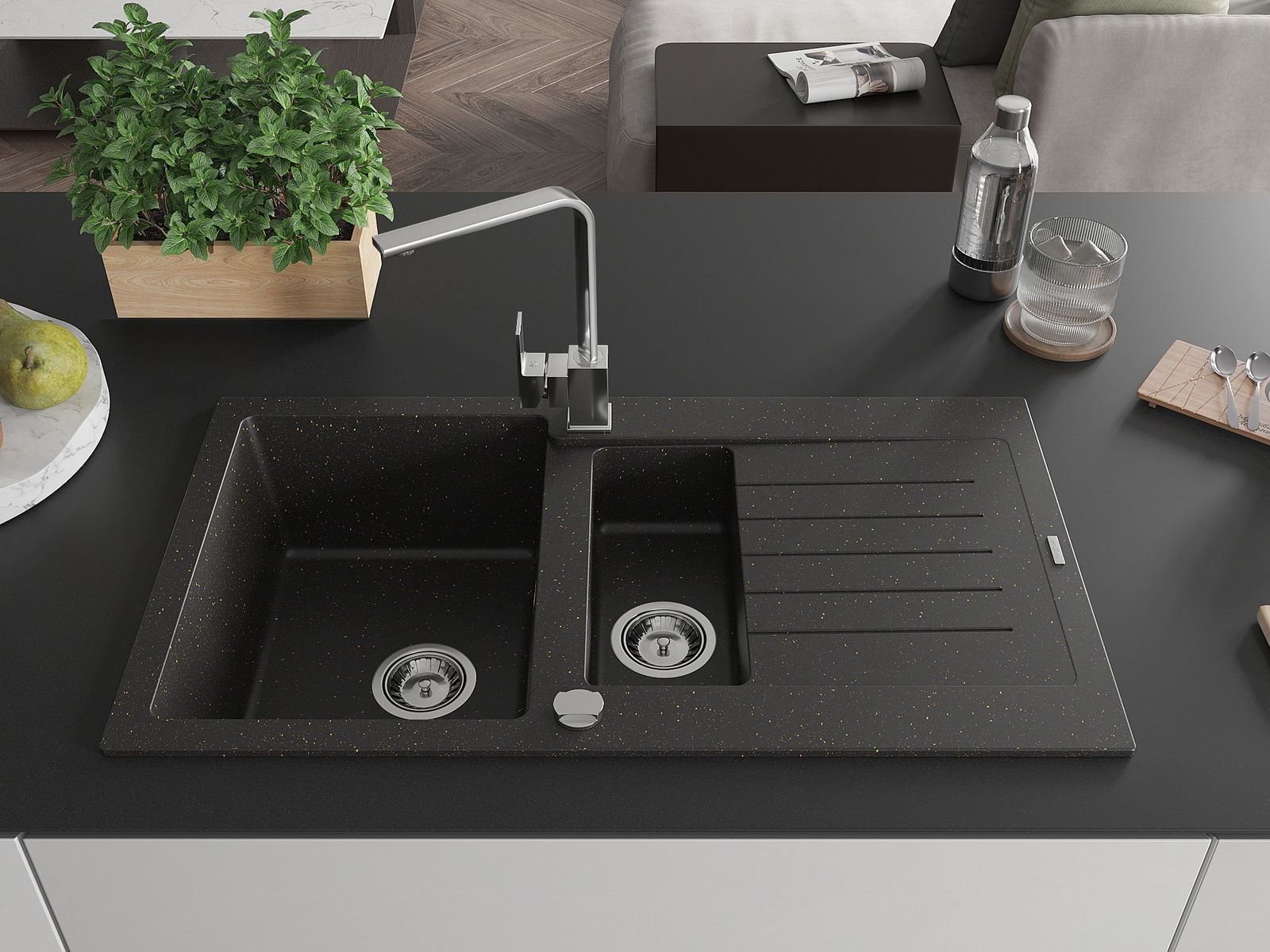 Мивката е направена от висококачествен гранит. Това е елегантно и най -вече практично допълнение към всяка кухня, независимо от нейния стил. Висококачествената и гранитна издръжливост осигуряват много години употреба.