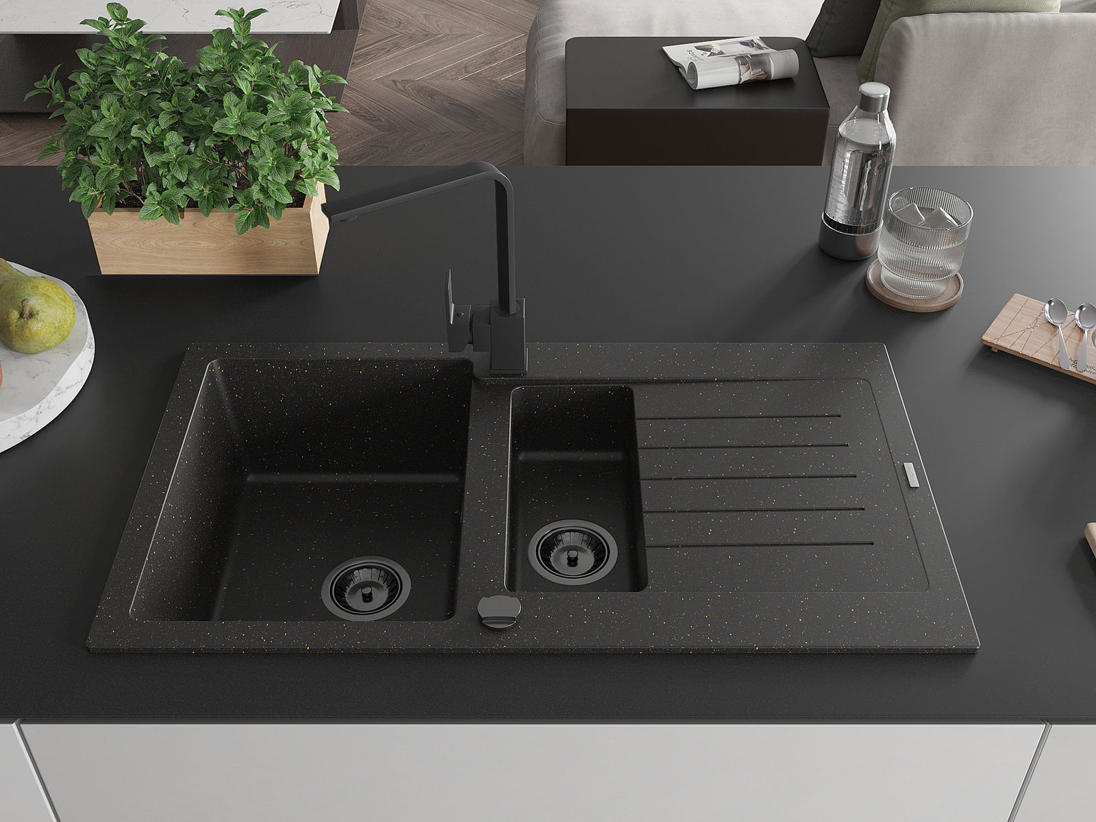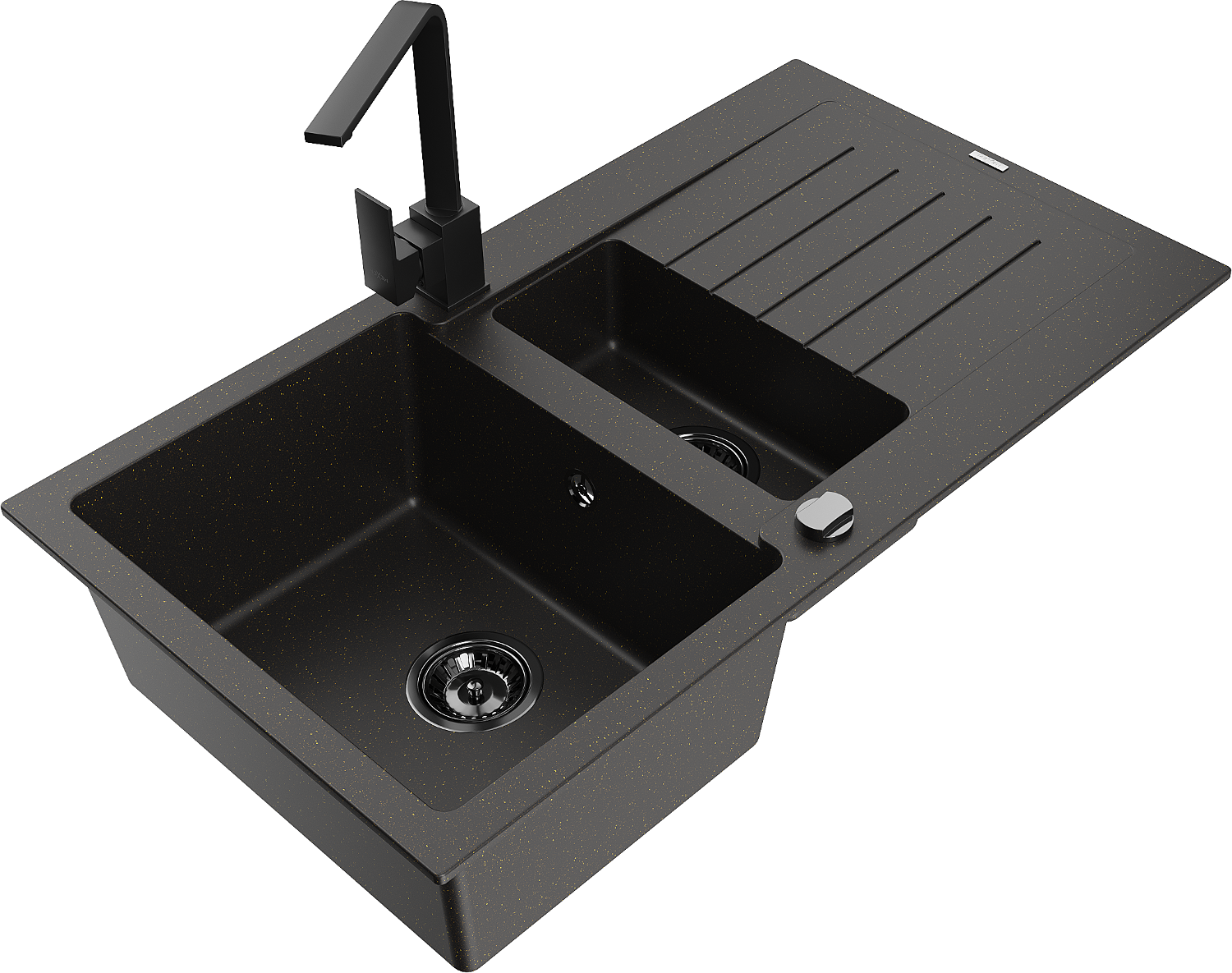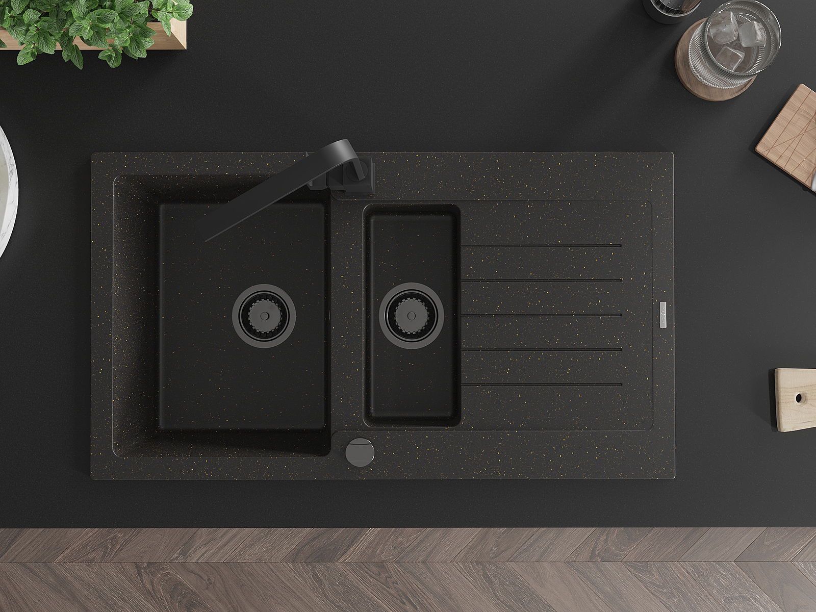 Mexen Matias гранитна мивка 1,5 камери с отцеждач и кухненски смесител Рита,