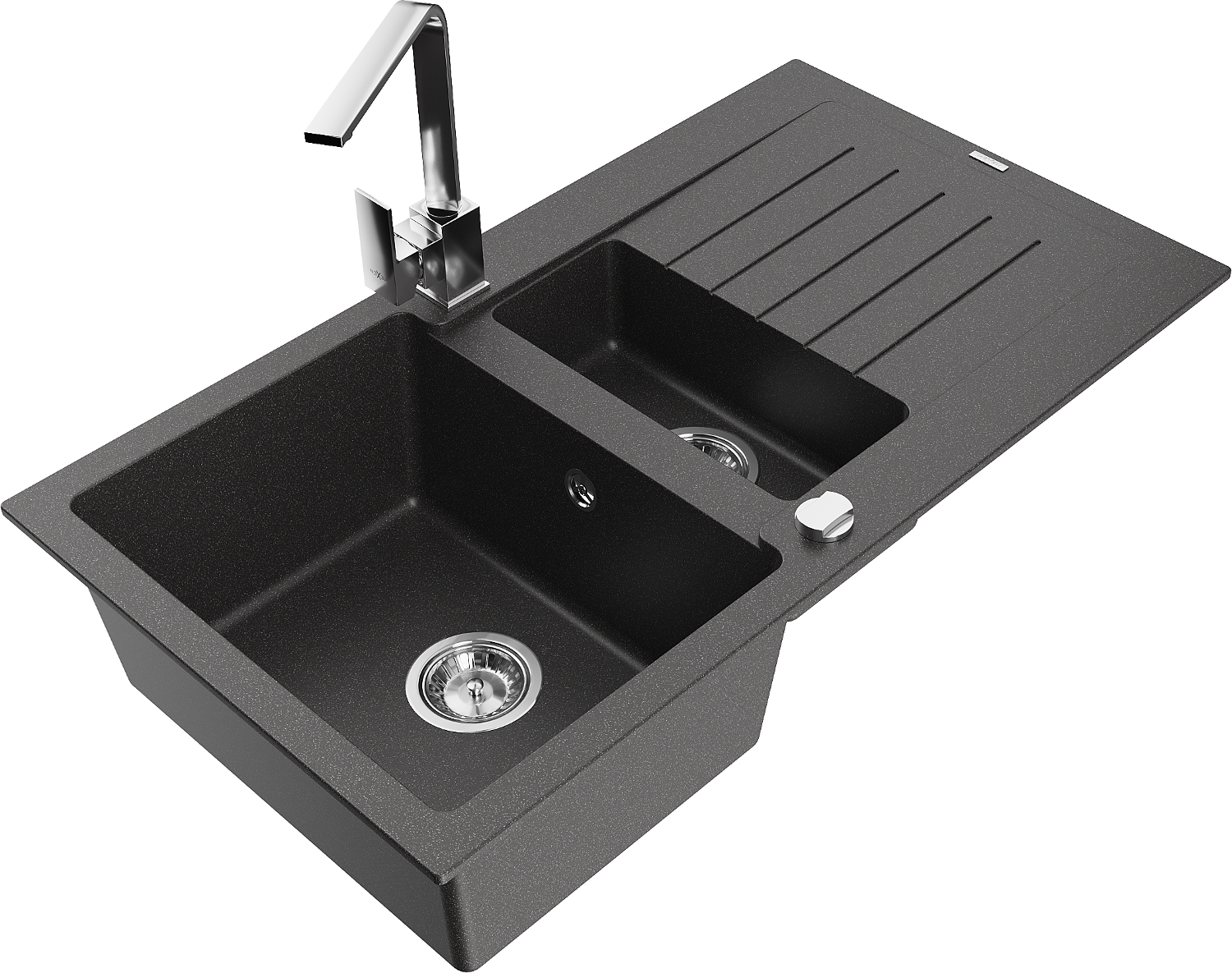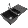 Mexen Matias гранитна мивка 1,5-корпусна с отцедник и кухненски смесител