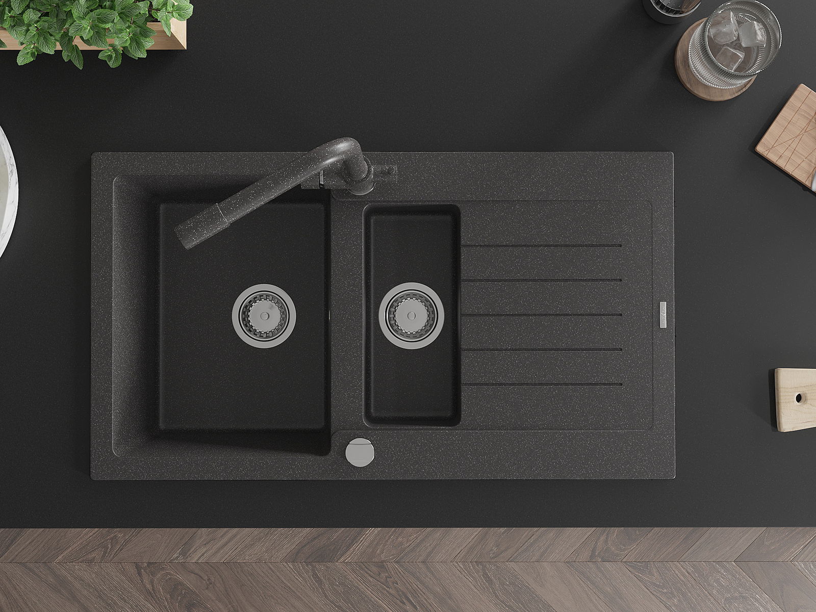 Мексен Матиас гранитна мивка с 1.5 камери и отцедник и кухненски смесител Дуеро, черен на точки - 6502-76-671600-76