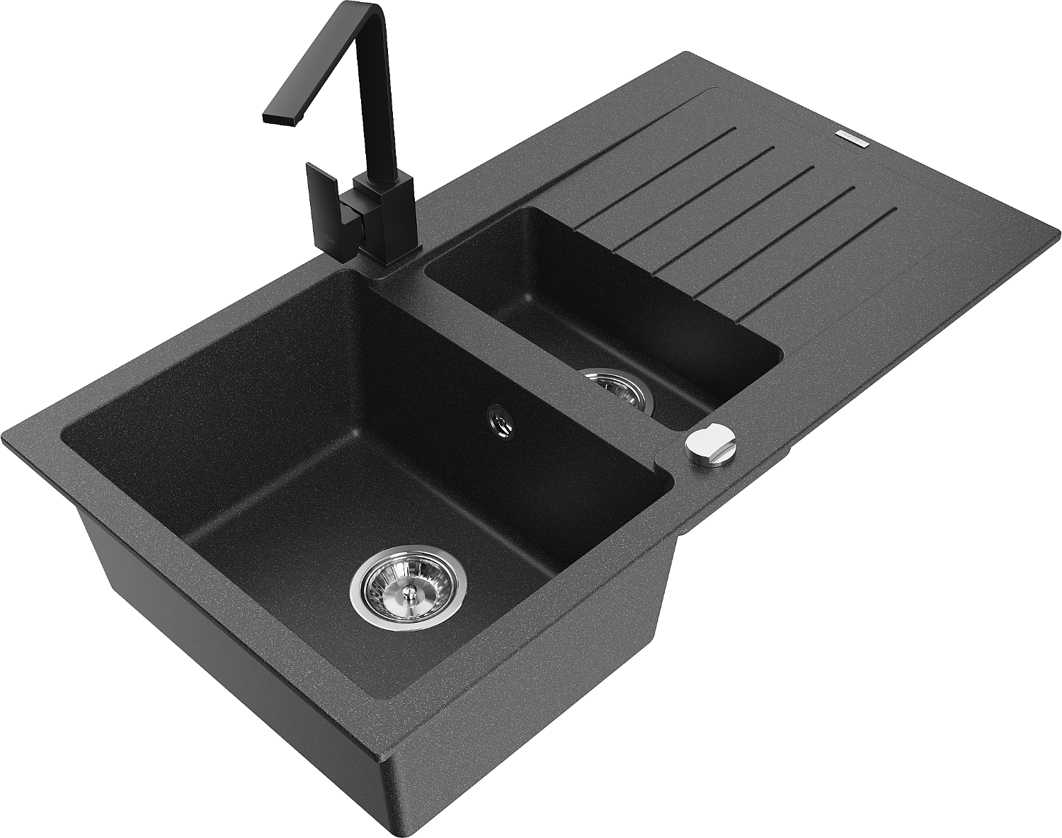 Mexen Matias гранитна мивка с 1,5 камери с отцедник и кухненски смесител