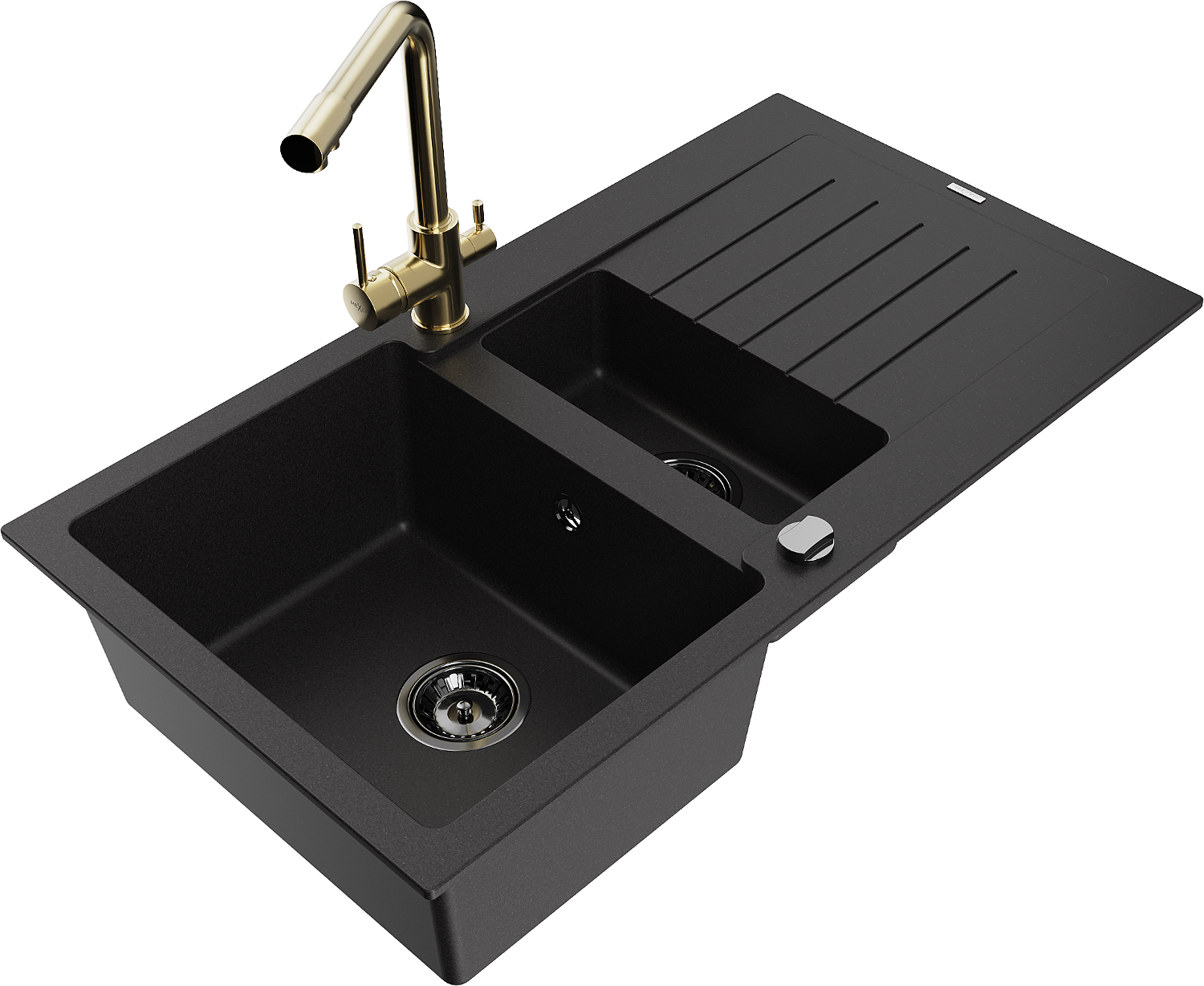 Mexen Matias гранитна мивка 1,5-камерна с капковник и кухненски смесител Duero, черен - 6502-77-671600-50-B