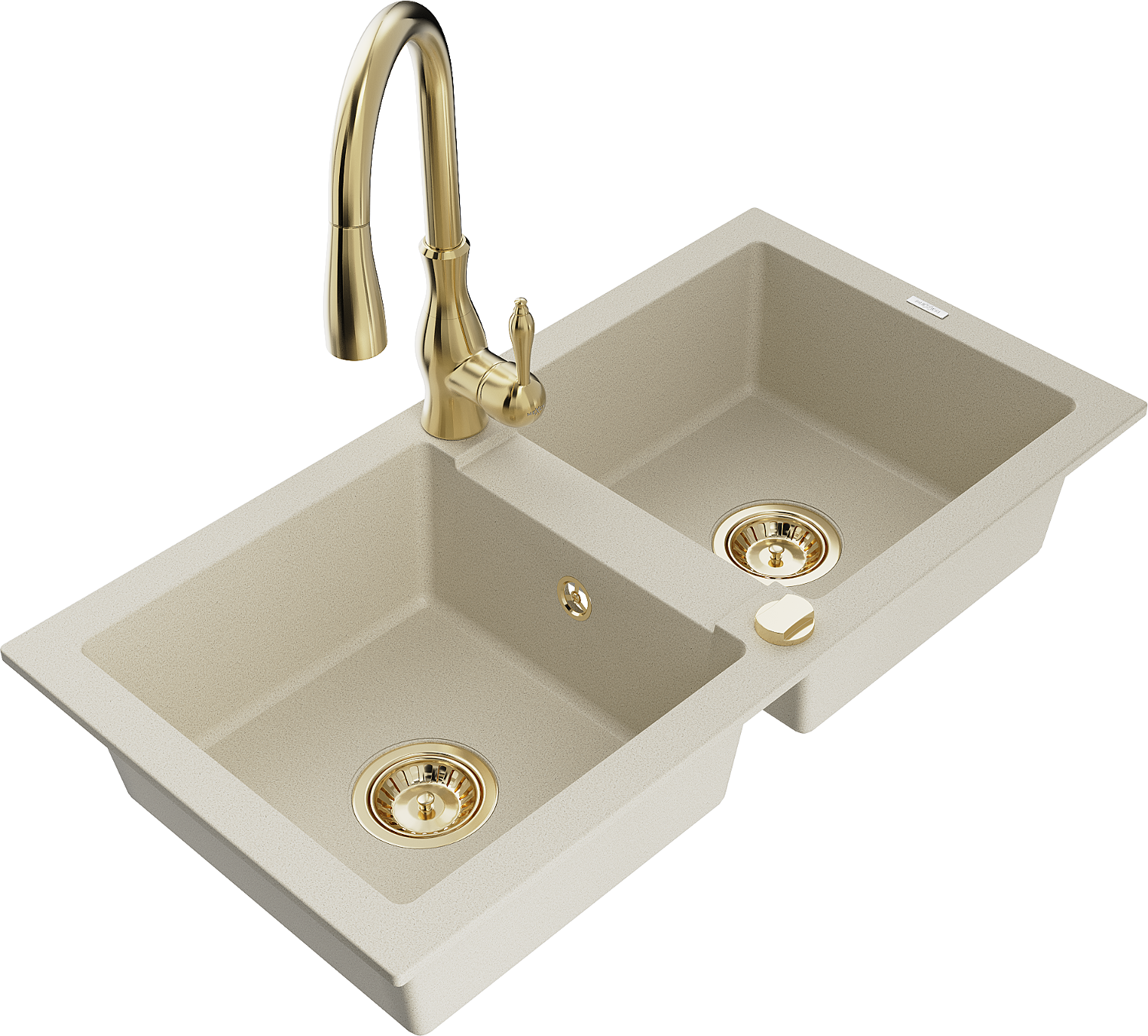 Mexen Mario гранитна мивка с 2 отделения и кухненски смесител Savita, бежов - 6504-69-672601-50