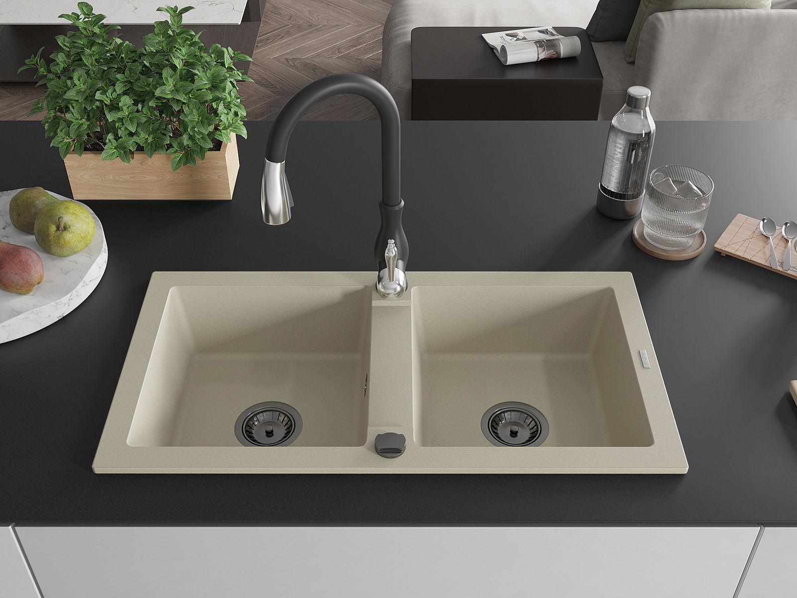 Мивката е направена от висококачествен гранит. Това е елегантно и най -вече практично допълнение към всяка кухня, независимо от нейния стил. Висококачествената и гранитна издръжливост осигуряват много години употреба.