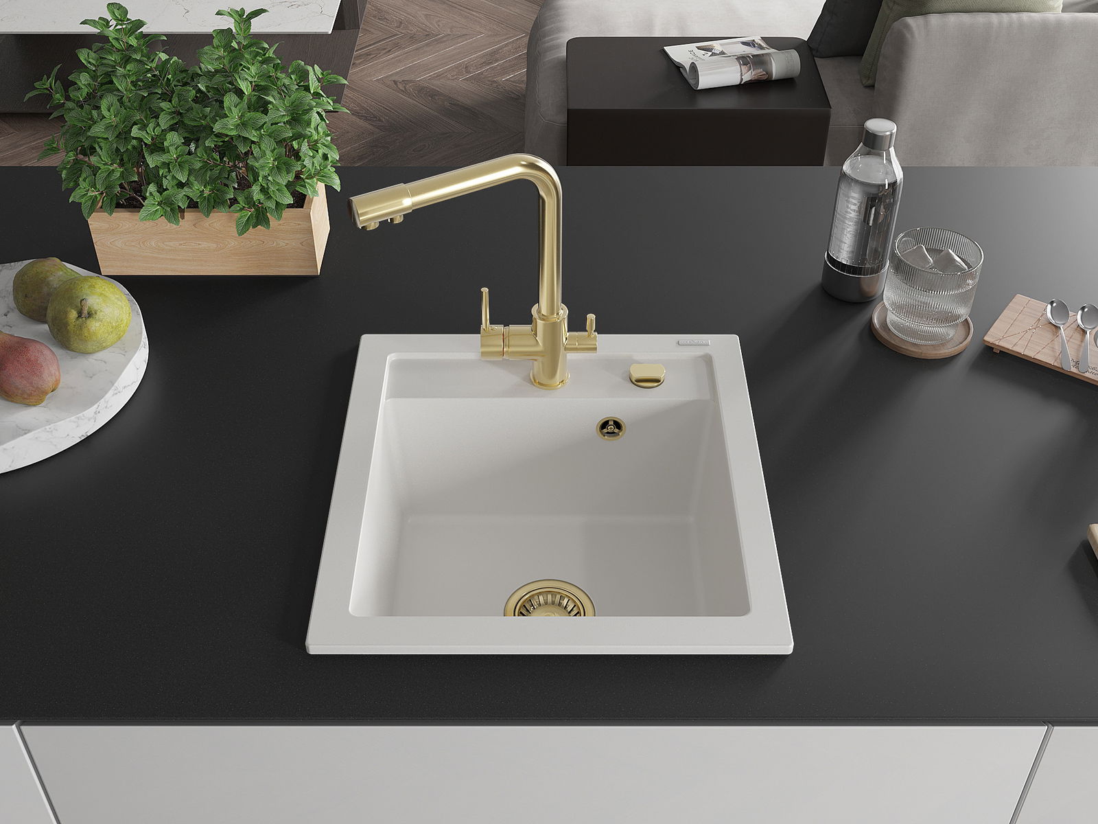 Mexen Vito кухненска мивка от гранит с 1 отделение и кухненски смесител Duero, бял - 6503-20-671600-50