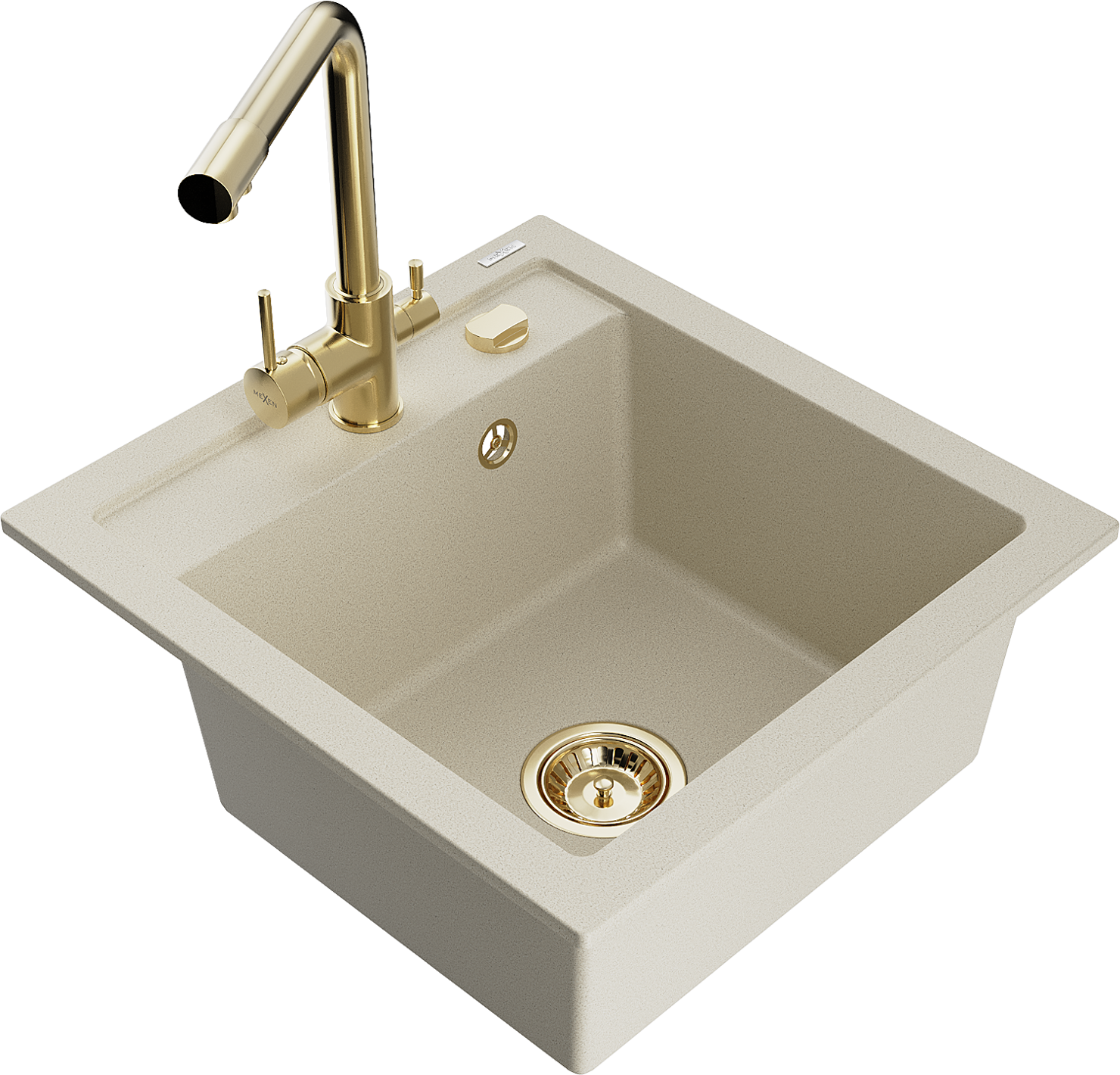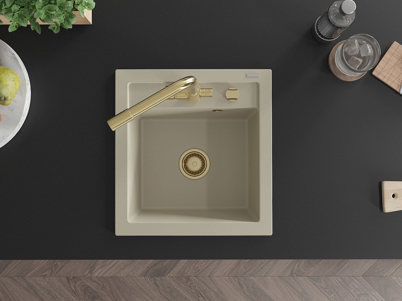 Mexen Vito гранитна мивка с 1 отделение и кухненски смесител Duero, бежов - 6503-69-671600-50